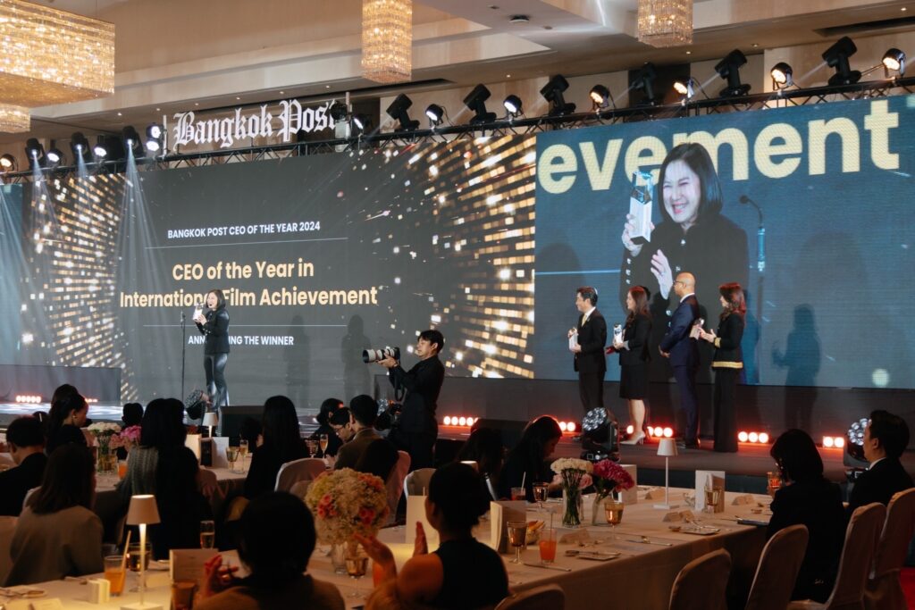 จินา โอสถศิลป์ กล่าวความรู้สึกว่า “ขอขอบคุณบางกอกโพสต์ที่มอบรางวัลอันทรงเกียรติ รางวัล ‘CEO of the Year in International Film Achievement’ ให้กับดิฉัน และทีม GDH ทุกคน ที่มุ่งมั่นสร้างสรรค์
