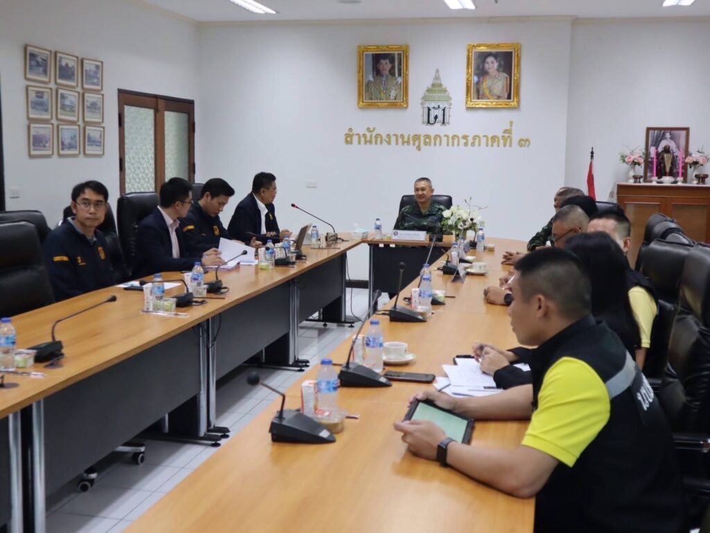 เมื่อวันที่ 8 พฤศจิกายน 2567 ที่ผ่านมา พลโท กิตติพงศ์ ชื่นใจชน แม่ทัพน้อยที่ 3 ในฐานะ ผู้บัญชาการหน่วยบัญชาการสกัดกั้นและปราบปรามยาเสพติด สารตั้งต้นและเคมีภัณฑ์ ชายแดนภาคเหนือ (ผบ.นบ.ยส.35) นายธันวา ผุดผ่อง ผู้อำนวยการสำนักงานป้องกันปราบปรามยาเสพติดภาค 5 และคณะ ได้ประสานหารือกับ นายกฤดิพรรธน์ สิงห์อุบลปิติกุล ผู้อำนวยการสำนักงานศุลกากรภาคที่ 3 ถึงมาตรการในการสกัดกั้น การลักลอบนำเข้าและส่งออกสารตั้งต้นและเคมีภัณฑ์ที่ใช้ในกระบวนการผลิต ยาเสพติด ผ่านพรมแดนภาคเหนือ ซึ่งในห้วงที่ผ่านมา ปปส.ภาค 6 มีการบูรณาการหน่วยงานที่เกี่ยวข้อง นำกำลังปิดล้อมตรวจค้น ตรวจสอบโกดัง ถนนสายแม่สอด – แม่ระมาด บริเวณ หมู่ที่ 6 บ้านแม่กึ้ดสามท่า ตำบลแม่กาษา อำเภอแม่สอด จังหวัดตาก 1 แห่ง และ ตำบลแม่สอด อำเภอแม่สอด จังหวัดตาก อีก 1 แห่ง โดยเจ้าหน้าที่ ปปส.ต่างประเทศ มีการสืบทราบแกะรอยติดตาม การเคลื่อนย้ายของสารเคมีมานาน ตั้งแต่เดือนสิงหาคม 67 จากการตรวจสอบภายในโกดัง พบถังบรรจุสารเคมี จำนวน 4,418 ถัง และในตำบลแม่สอด พบถังเคมีบรรจุสารเคมี ขนาด 200 ลิตร อีกจำนวน 360 ถัง รวมกว่า 830 ตัน มีแนวโน้มที่จะนำไปเป็นสารตั้งต้นเพื่อผลิตยาเสพติด ทั้งนี้ นบ.ยส.35 ได้ประสานหารือ สำนักงานศุลกากรภาคที่ 3 และหน่วยงานที่เกี่ยวข้อง เพื่อสกัดกั้น ยับยั้ง และจับกุม ไม่ให้สารเคมีถูกลักลอบลำเลียงไปยังประเทศเพื่อนบ้าน และผลิตยาเสพติดส่งเข้ามายังประเทศไทย