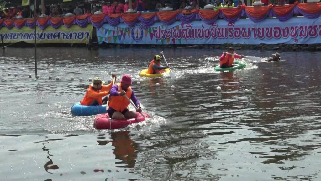 เมื่อเวลา11.00น.วันที่10พย.67 นายวสุ ปริยพาณิชย์ กำนันตำบลศาลายา ร่วมกับเทศบาลตำบลศาลายา จัดงานประเพณีแข่งขันเรือพายชุมชนเทศบาลศาลายา สืบสานอนุรักษ์ประเพณีท้องถิ่นขึ้น บริเวณท่าน้ำวัดสาลวัน คลองมหาสวัสดิ์ ต.ศาลายา อ.พุทธมณฑล จ.นครปฐม โดยมีการแข่งขันพายเรือขบขัน หัวใบ้-ท้ายบอด แข่งขันพายเรือชักคะเย่อ แข่งขันเรือพาย7ฝีพาย พร้อมกวดกองเชียร์ เป็นต้น นอกนี้ในงานยังมีการบริการตักผมให้ฟรี นอกนี้ยังมีชาวบ้านในชุมชนได้นำอาหารรสเด็นฝีมือตัวเองมาบริการให้ทานฟรีๆตลอดงาน