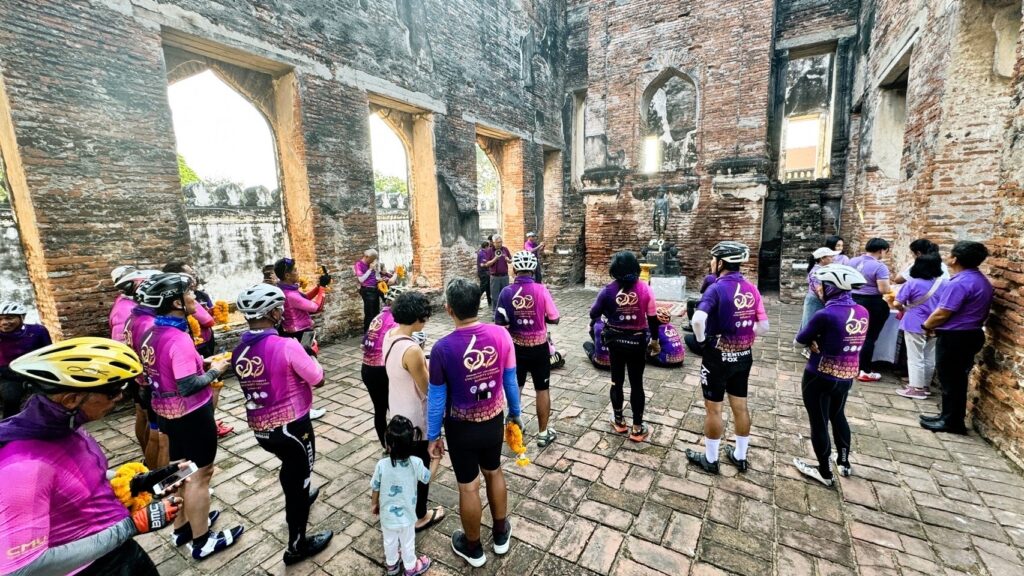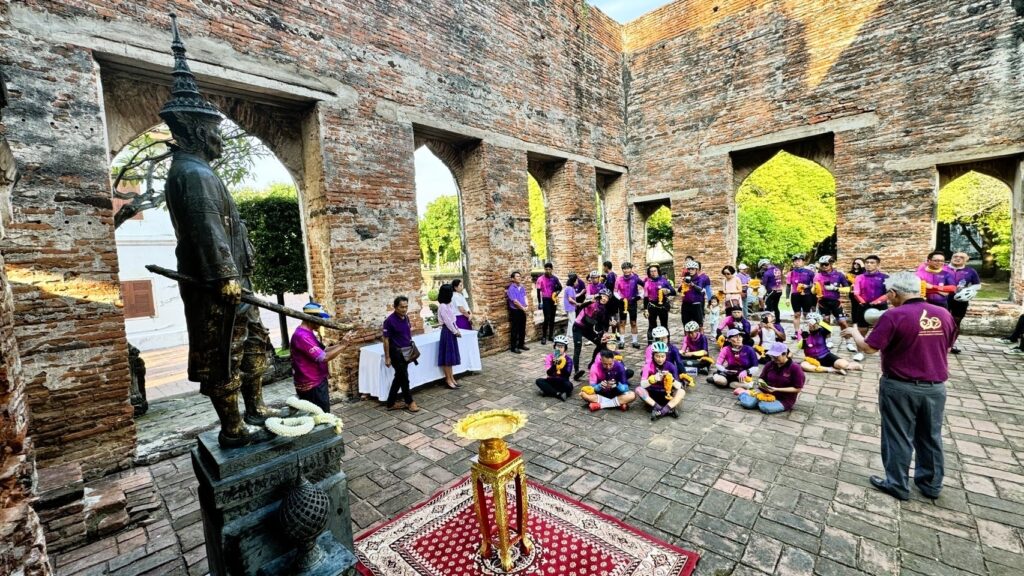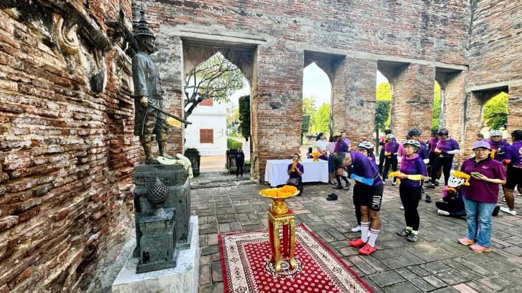 วันที่ 9 พฤศจิกายน 2567 นายจีระศักดิ์ ตระกูลศักดิ์ ประธานชมรมศิษย์เก่ามหาวิทยาลัยเชียงใหม่ จังหวัดลพบุรี พร้อมด้วย อาจารย์ภูธร ภูมะธน ผู้เชี่ยวชาญด้านประวัติศาสตร์ของประเทศไทย นางสาวประภาพรรณ ศรีสุข ผู้อำนวยการพิพิธภัณฑสถานแห่งชาติ สมเด็จพระนารายณ์ และคณะศิษย์เก่ามหาวิทยาลัยเชียงใหม่ จังหวัดลพบุรี ให้การต้นรับคณะนักปั่นจักรยานปั่นเพื่อน้อง กรุงเทพฯ – เชียงใหม่ ครั้งที่ 7 “ครบรอบ 60 ปี มช. ปั่นปิ๊กบ้านกั๋น” ณ พระนารายณ์ราชนิเวศน์ จังหวัดลพบุรี จากนั้นคณะได้เข้ากราบสักการะสมเด็จพระนารายณ์มหาราช ณ พระที่นั่งดุสิตสวรรค์ธัญญมหาปราสาท และเยี่ยมชมโบราณสถานในเขตพระราชฐานวังนารายณ์ โดยขบวนนักปั่นได้ออกเดินทางจาก The Rabbit Water Park อยุธยา จังหวัดพระนครศรีอยุธยา เวลา 12.10 น. และมาถึงพระนารายณ์ราชนิเวศน์ จังหวัดลพบุรี ในเวลา 15.30 น. รวมระยะ 81.6 กิโลเมตร ซึ่งในวันพรุ่งนี้ 10 พฤศจิกายน 2567 คณะนักปั่นจะออกเดินทางจากลพบุรี เพื่อไปพบศิษย์เก่ามหาวิทยาลัยเชียงใหม่ โดยผ่านจังหวัดสิงห์บุรี จังหวัดชัยนาท จังหวัดอุทัยธานี และพักที่จังหวัดนครสวรรค์