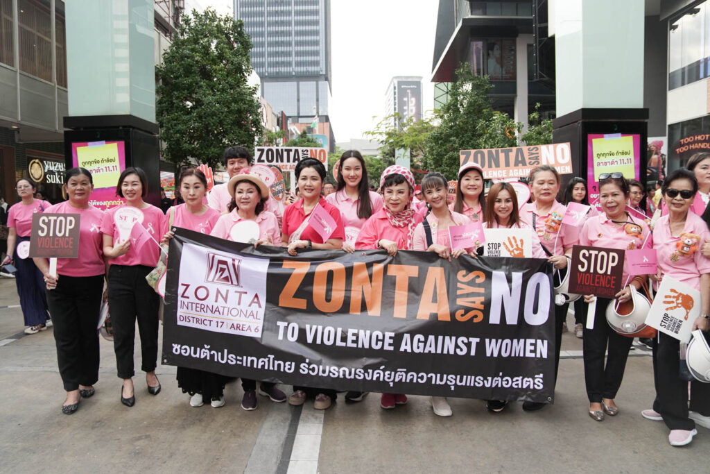สืบเนื่องจากเดือนพฤศจิกายนเป็นเดือนเกิดของ “สโมสรซอนต้าสากล” และเป็นเดือนแห่งการรณรงค์ยุติความรุนแรงต่อสตรี ทางสโมสรซอนต้าสากลจึงได้มีการจัดกิจกรรมเดินรณรงค์ยุติความรุนแรงต่อเด็ก สตรี และบุคคลในครอบครัว ประจำปี 2567 ร่วมกับ กระทรวงการพัฒนาสังคมและความมั่นคงของมนุษย์ (พม.) ภายใต้แนวคิด “สร้างสุข ปลอดภัย ไร้ความรุนแรง” (ACT NOW to end Violence against Women and Girls) ณ สยามสแควร์ เมื่อวันที่ 11 พฤศจิกายนที่ผ่านมา
