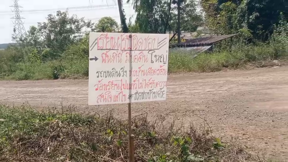 โดยภายในคลิปเป็นภาพรถพ่วงบรรทุกดินขับเข้าออกบ่อดิน และมีเสียงชาวบ้านพูดว่า “ท่านดูนะครับ รถวิ่งกันทั้งวันเลย ชาวบ้านได้รับความเดือดร้อน เรื่องเสียงดังและสิ่งแวดล้อมด้วย เดือดร้อนครับ” นอกจากนี้ยังได้เขียนป้ายระบุว่า “เรียนผู้รับผิดชอบพื้นที่นี้ มีบ่อดินใหญ่รถดินวิ่ง ชาวบ้านเดือดร้อน ร้องเรียนไปแล้วไม่ได้รับความสนใจแก้ไข ช่วยชาวบ้านด้วย” โดยติดแผ่นป้ายไว้บริเวณทางเข้าออกบ่อดินติดถนนเลียบคลองระพีพัฒน์เพื่อให้ ผู้ใช้รถใช้ถนนสัญจรไปมาได้เห็นและช่วยกระจายให้ผู้ใหญ่หรือผู้เกี่ยวข้องได้รับทราบและเขามาช่วยเหลือ