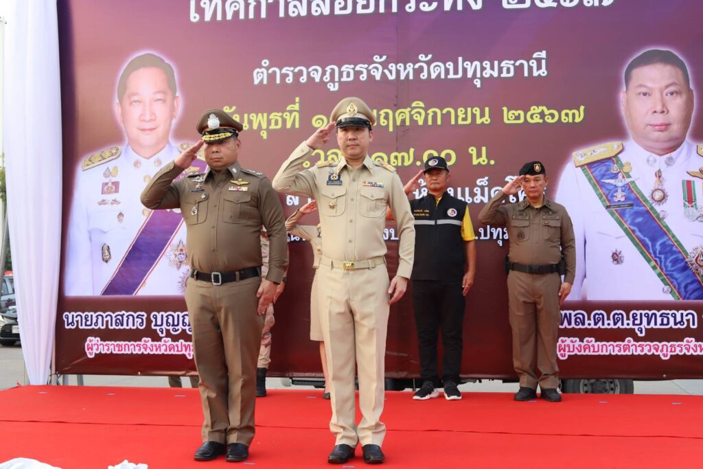 เมื่อวันที่ 13 พ.ย.67 เวลา 17.00 น. นายพงศธร กาญจนะจิตรา รองผู้ว่าราชการจังหวัดปทุมธานี เป็นประธานในพิธีปล่อยแถวระดมกวาดล้างอาชญากรรมฯ ในช่วงประเพณีลอยกระทง ประจำปี พ.ศ.2567 โดยมี พล.ต.ต.ยุทธนา จอนขุน ผบก.ภ.จว.ปทุมธานี นางสาวสุพีพร โมรา หัวหน้าสำนักงานป้องกันและบรรเทาสาธารณภัยจังหวัดปทุมธานี ผู้กำกับการสถานีตำรวจภูธร สังกัดตำรวจภูธรปทุมธานี ทุกสถานี ทหาร อาสาสมัครฝ่ายปกครอง กำนัน ผู้ใหญ่บ้าน อาสาสมัครกู้ภัย เข้าร่วมพิธี ณ ลานจอดรถห้างสรรพสินค้าแม็คโคร สาขาเมืองปทุมธานี อำเภอเมืองปทุมธานี