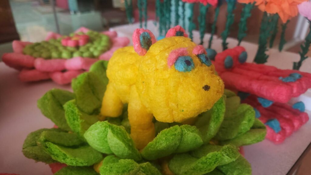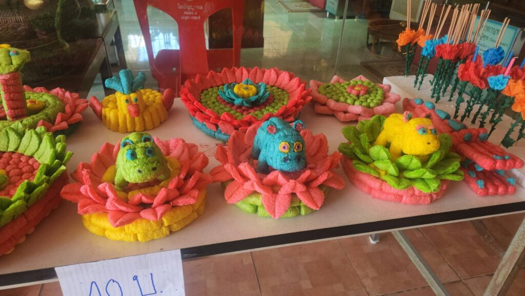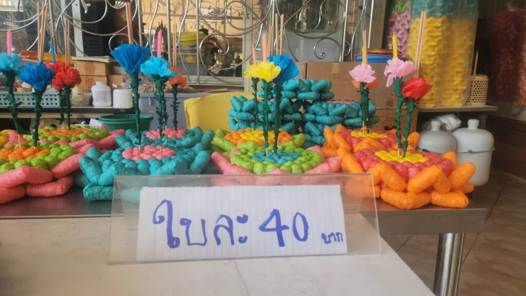นางลำพึง นิลนพคุณ อายุ 51 เจ้าหน้าที่วัดธัญญะผล (พี่แสบ) เปิดเผยว่า ทางวัดเริ่มทำกระทงมาได้ประมาณ 1 สัปดาห์ โดยแล้วเสร็จกว่า 7,000 กระทง แบ่งเป็นกระทงขนมปัง 3,000 กระทง กระทงขนมข้าวโพด 4,000 กระทง ซึ่งกระทงขนมปังทุกอันทำจากแป้งขนมปัง ขึ้นรูปโดยการปั้นด้วยมือก่อนจะผ่านการอบจนแข็งตัว แล้วนำมาวางขาย ส่วนกระทงขนมข้าวโพด จะใช้ขนมข้าวโพดหลากสี ที่เป็นชิ้น นำมาประกอบกันโดยใช้น้ำเปล่าเป็นตัวเชื่อมเสมอกาว เพื่อขึ้นโครงร่างของกระทง โดยไฮไลท์ของกระทงขนมปังและแระทงขนมข้าวโพด จะอยู่ที่กระทง รูปหัวใจ และรูป สัตว์ ต่างๆ โดยเฉพาะ กระแส น้องหมูเด้งฟีเวอร์ ทางวัดธัญญะผล ได้นำขนมข้าวโพดมาประดิษฐ์ เป็น กระทงน้องหมูเด้ง ได้รับกระแสตอบรับเป็นอย่างมากจน ผลิตไม่ทัน สงนราคากระทงขนมปัง และกระทงขนมข้าวโพด อยู่ที่ กระทงละ 40 บาท ส่วนกระทงรูปหัวใจ และรูปสัตว์ต่างๆ ราคาจะอยู่ที่ขนาดของกระทง และระดับความยากของการผลิต ซึ่งเป็นกระทงทำมือ ใช้เวลาผลิตนาน สำหรับประชาชนที่สนใจกระทงขนมปัง และกระทงขนมข้าวโพด สามารถหาซื้อได้ที่วัดธัญญะผล จังหวัดปทุมธานี ในราคา กระทงละ 40 บาท ส่วนกระทงขนมข้าวโพดรูป หัวใจ และสัตว์ต่างๆ อิทิ น้องหมูเด้ง ทางวัดจะจำหน่ายแค่ที่งาน ลอยกระทงวัดธัญญะผล 15 พฤศจิกายน 2567 เท่านั้น เนื่องจากของมีจำนวนไม่เยอะ