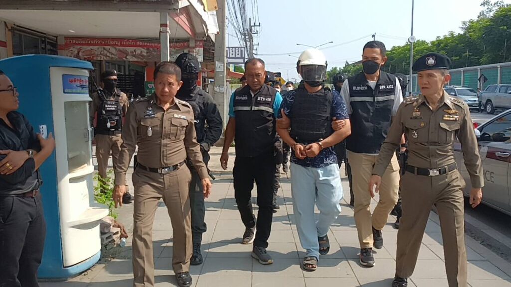 ต่อมาเจ้าหน้าที่ตำรวจได้ทำการสืบสวนและทำการตรวจสอบกล้องวงจรปิดเพิ่มเติม จนทราบว่าผู้ก่อเหตุคือ นายสมลักษ์ จันทองแท้ อายุ 32 ปี โดยภายหลังก่อเหตุ นายสมลักษ์ฯ หลบหนีมาถึงบริเวณสี่แยกปลวกสูง ต.บ้านนา อ.วชิรบารมี จ.พิจิตร จึงได้ประสาน สภ.วชิรบารมี เพื่อสกัดจับ ต่อมาของวันเดียวกันในเวลาประมาณ 22.30 น. เจ้าหน้าที่ตำรวจสามารถจับกุมานายสมลักษ์ จันทองแท้ ได้ที่บริเวณสี่แยกปลวกสูง ผลการตรวจค้นตัวพบ เงินสดจำนวน 160,000 บาท ซึ่งเป็นเงินที่ใต้จากการชายทอง