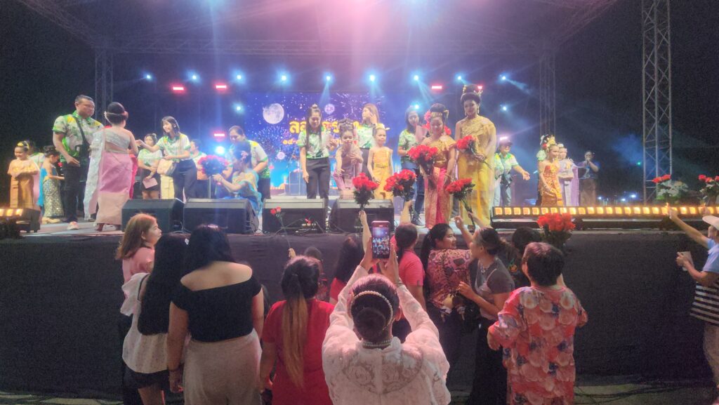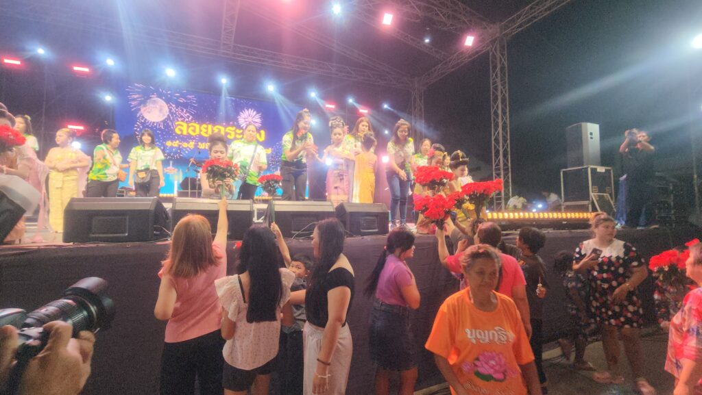 บรรยากาศที่วัดสระบัวคึกคักไปด้วยผู้คนที่มาร่วมงานลอยกระทงเทศบาลเมืองสนั่นรักษ์ ประชาชนพาบุตรหลานมาร่วมงานเต็มไปด้วยความสุขและรื่นเริง โดยเฉพาะเวทีการประกวดหนูน้อยนพมาศ ที่เหล่าเยาวชนน้อย ๆ ในชุดไทยประยุกต์ที่สวยงามอวดโฉมความสามารถกันอย่างเต็มที่ มีรางวัลหลากหลายได้แก่ หนูน้อยนพมาศสุขภาพดี หนูน้อยนพมาศยิ้มสวย และรางวัลขวัญใจช่างภาพ