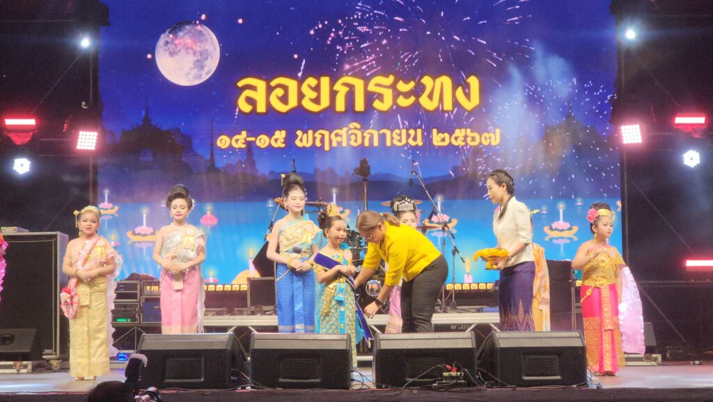 เมื่อเวลา 19.00 น. วันที่ 14 พฤศจิกายน 2567 ที่วัดสระบัว คลองสิบเอ็ด อำเภอธัญบุรี จังหวัดปทุมธานี พล.ต.ท.คำรณวิทย์ ธูปกระจ่าง นายกองค์การบริหารส่วนจังหวัดปทุมธานี เป็นประธานเปิดงานโครงการวันลอยกระทง เทศบาลเมืองสนั่นรักษ์ ระหว่างวันที่ 14 – 15 พฤศจิกายน 2567 โดยมีเยาวชนชาวสนั่นรักษ์ 13 คนร่วมเข้าประกวดหนูน้อยนพมาศในชุดไทย ผู้ปกครองและประชาชร่วมให้กำลังใจบุตรหลานและเยาวชนจำนวนมาก