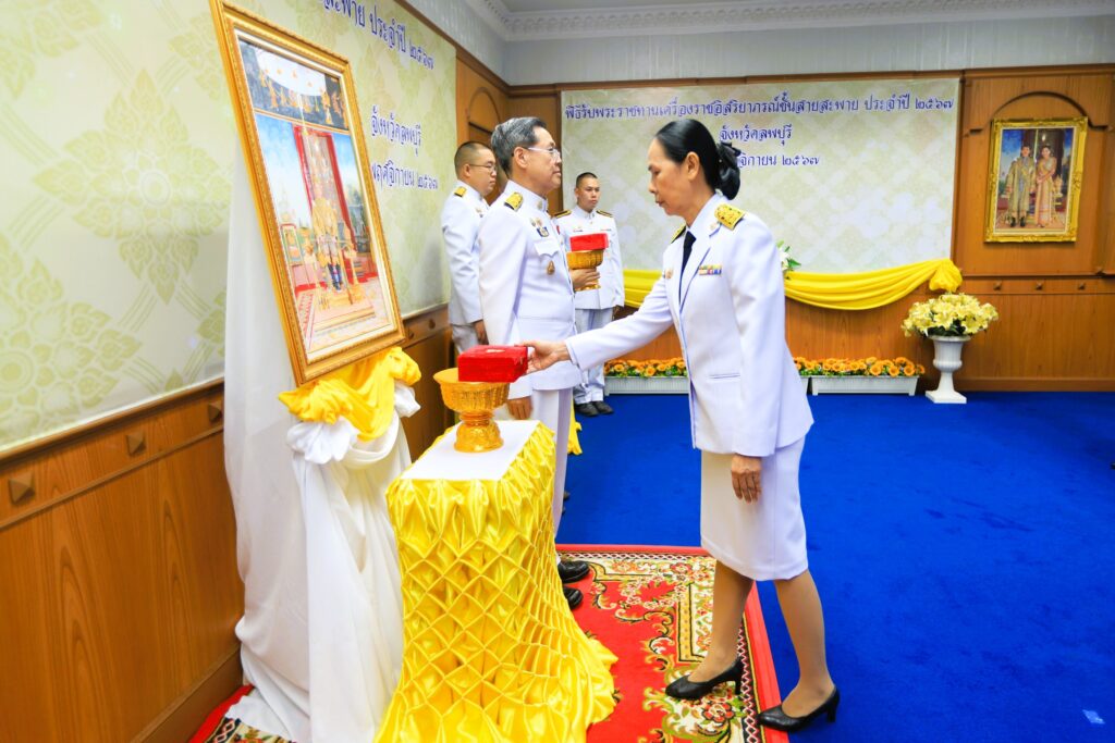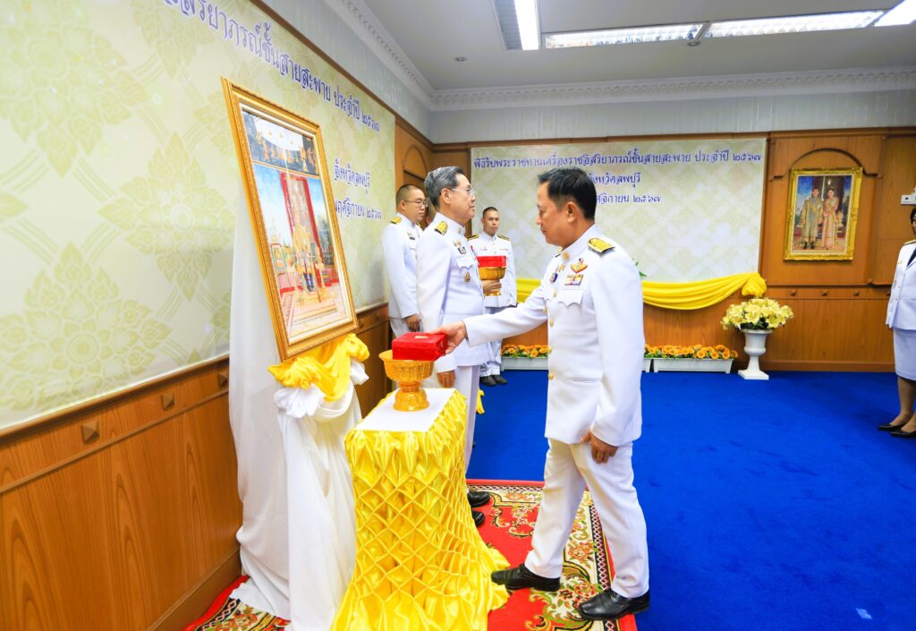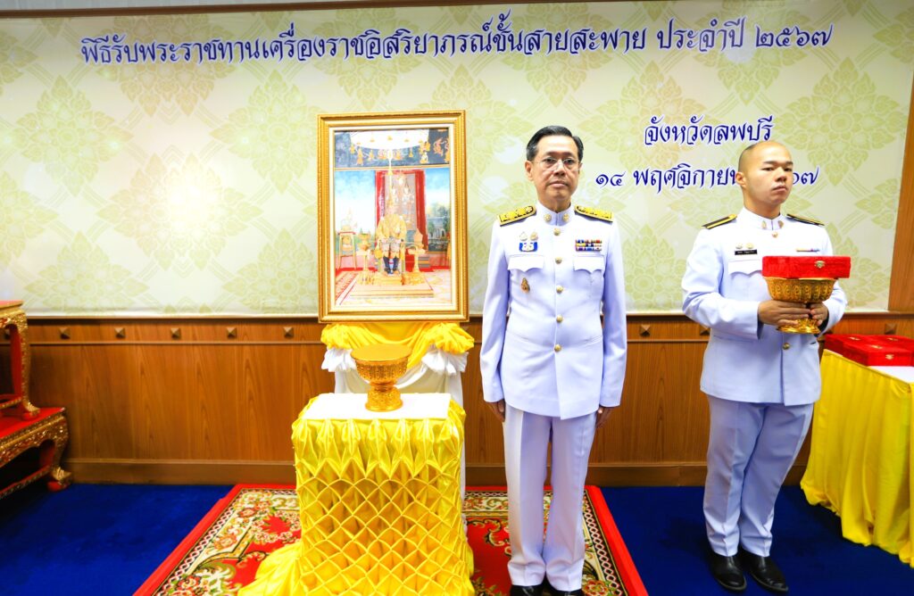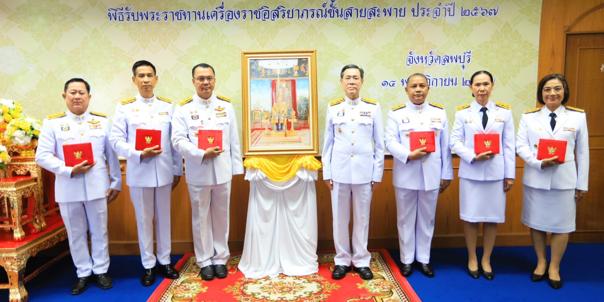 โดยในวันนี้ 14 พฤศจิกายน 2567 เวลา 09.30 น. ณ ห้องรับรองป่าสักชลสิทธิ์ ชั้น 5 ศาลากลางจังหวัดลพบุรี นายอำพล อังคภากรณ์กุล ผู้ว่าราชการจังหวัดลพบุรี เป็นประธานในพิธีรับพระราชทานเครื่องราชอิสริยาภรณ์ ชั้นสายสะพาย ประจำปี 2567 โดยมี หัวหน้าส่วนราชการในสังกัดกระทรวงมหาดไทยเข้าร่วมพิธี