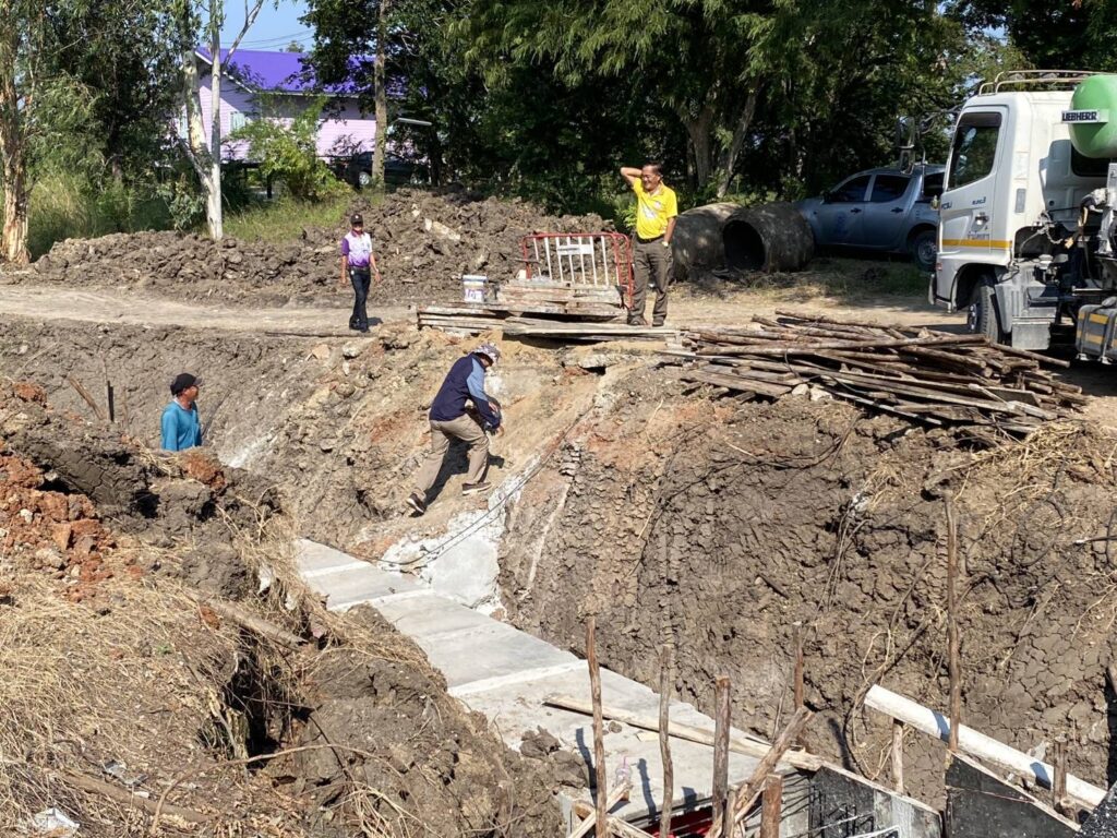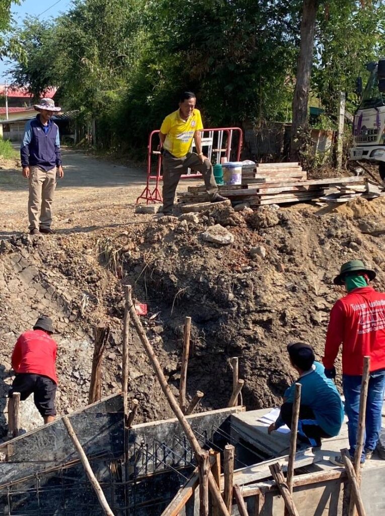 ได้พาทีมงานกองช่าง อบต. หนองทรายขาว ลงพื้นที่ หมู่ที่ 7 บ้านคลอง ต.หนองทรายขาว เพื่อดูโครงการ ” ก่อสร้างท่อเหลี่ยมบริเวณหลังวัดบ้านคลอง (คลองบัว) อำนวยความสะดวกให้กับพี่น้องเกษตรกรในพื้นที่ของหมู่ที่ 7 บ้านคลอง ระบายน้ำได้สะดวกขึ้น