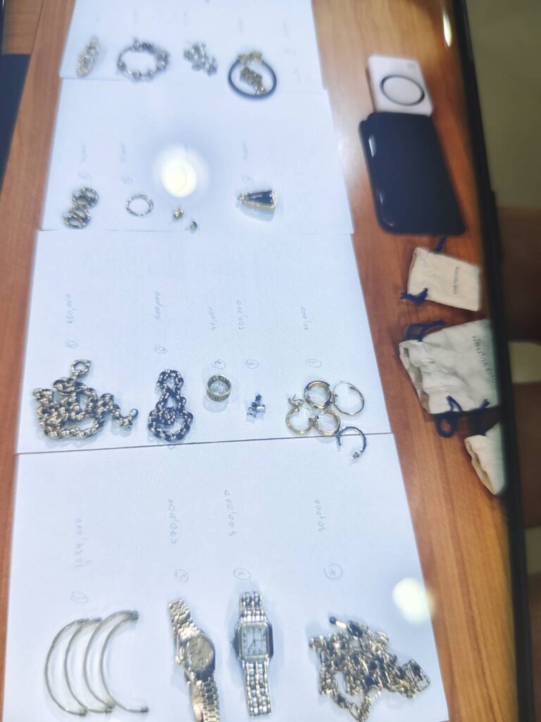 ตรวจค้นพบของกลางเครื่องประดับยี่ห้อหรู มูลค่ากว่า 3.5 ล้านบาท ซึ่งเป็นของผู้เสียหาย ได้อย่างครบถ้วน ซุกซ่อนอยู่ในกระเป๋าสัมภาระ จึงควบคุมตัวมาสอบสวน พร้อมประสานพิสูจน์หลักฐานเข้าเก็บดีเอ็น ประกอบหลักฐานในการดำเนินคดี โดยมี น.ส.แอนนี่ นักธุรกิจสาว เดินทางมาตรวจสอบความทรัพย์สิน ด้วยสีหน้าที่ยิ้มแย้ม พร้อมทั้งกล่าวชื่นชมตำรวจชุดจับกุม เพียงไม่กี่ชั่วโมงสามารถรวบตัวคนร้ายได้อย่างรวดเร็ว