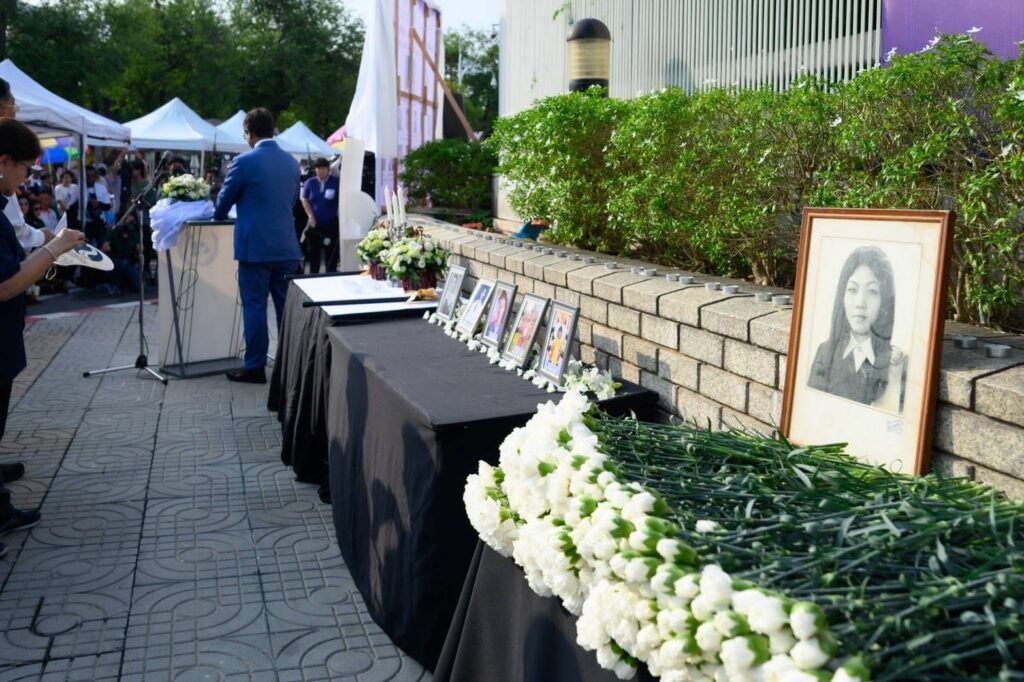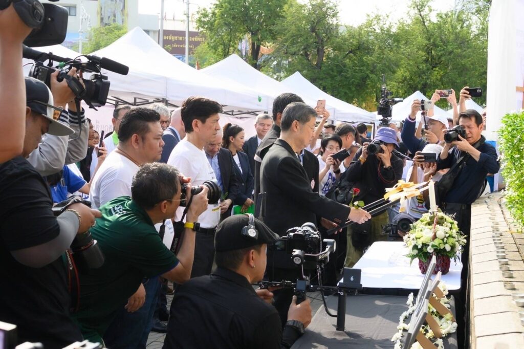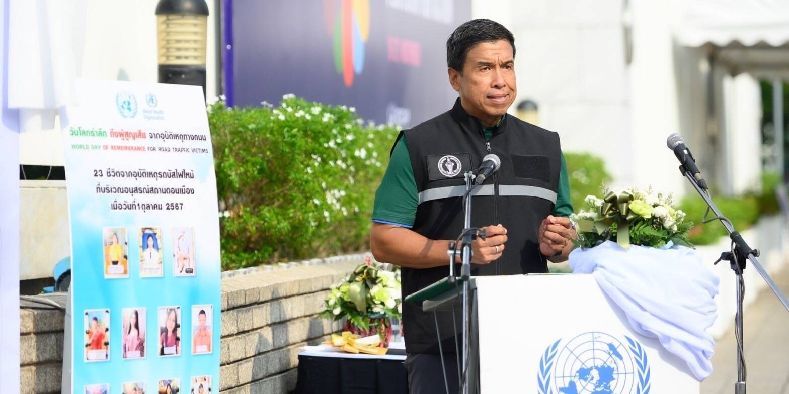วันที่ 17 พฤศจิกายน 2567 ณ บริเวณหน้าสำนักงานองค์การสหประชาชาติประจำประเทศไทย ถนนราชดำเนิน กรุงเทพฯ : มูลนิธิเมาไม่ขับ ร่วมกับสำนักงานกองทุนสนับสนุนการสร้างเสริมสุขภาพ (สสส.) กรุงเทพมหานคร กรมป้องกันและบรรเทาสาธารณภัย กระทรวงสาธารณสุข สำนักงานตำรวจแห่งชาติ สโมสรโรตารี่ประเทศไทย ภาคีเครือข่ายรณรงค์ลดอุบัติเหตุภาครัฐ ภาคเอกชน ได้ร่วมกันจัดงานวันโลกรำลึกถึงผู้สูญเสียจากอุบัติเหตุทางถนน (World Day of Remembrance for Road Traffic Victims) ขึ้น โดยมีบุคคลสำคัญจากองค์กรทั้งในประเทศและต่างประเทศมาร่วมงาน อาทิเช่น นายสุรชัย เลี้ยงบุญเลิศชัย ที่ปรึกษาคณะกรรมการพิจารณาศึกษาแนวทางการป้องกันและลดอุบัติเหตุเพื่อสร้างความปลอดภัยทางถนน รัฐสภา ดร.ชัชชาติ สิทธิพันธุ์ ผู้ว่าราชการกรุงเทพมหานคร HE. Mr.Jean-Claude Poimbœuf เอกอัครราชทูตฝรั่งเศสประจำประเทศไทย นายนิกร จำนง ประธานกรรมการมูลนิธิประชาปลอดภัย Mr. Ishtiaque Ahmed, Economic Affairs Officer, Sustainable Transport Section, Transport Division, UNESCAP ผู้แทน UNESCAP,Thailand Dr.Jos Vandelaer ผู้แทนองค์การอนามัยโลกประจำประเทศไทย Mr.Dave Thomas อุปทูตรักษาการแทนเอกอัครราชทูตอังกฤษประจำประเทศไทย นางสาวภัทร์ศรี สุวิมล ผู้ว่าการโรตารี่ ภาค 3350 ผู้แทนโรตารี่ประเทศไทย นายปรีชา กลิ่นแก้ว เลขาธิการโครงการถนนปลอดเหตุชีวิตปลอดภัย โรตารี่ประเทศไทย นางรัชนี สุภวัตรจริยากุล (คุณแม่หมอกระต่าย) นายมหาโภคัย ขำกระแสร์ บิดาเด็กชายณัฐพงศ์ ขำกระแสร์ ครอบครัวเหยื่อรถบัสนักเรียน จังหวัดอุทัยธานี นายอนุสรณ์ แก้วใจ (บิดา) นางสุจิตร รอดจิตร์ (มารดา) (เด็กชายสิริณัฏฐ์ แก้วใจ) ครอบครัวเหยื่อรถบัสนักเรียน จังหวัดอุทัยธานี นายแพทย์แท้จริง ศิริพานิช เลขาธิการมูลนิธิเมาไม่ขับ ดร.อุดม หงส์ชาติกุล ผู้ก่อตั้งSocial Lab Thailand นางสาววารุณี ซื่อสัตย์สกุลชัย ผู้จัดการแผนกกิจกรรมเพื่อสังคม บริษัท วิริยะประกันภัยจำกัด (มหาชน) ผู้ช่วยกรรมการผู้จัดการ บริษัทกลางคุ้มครองผู้ประสบภัยจากรถ จำกัด เรืออากาศเอกนายแพทย์อัจฉริยะ แพงมา เลขาธิการสถาบันการแพทย์ฉุกเฉิน ผู้แทนมูลนิธิปอเต็กตึ๊ง ผู้แทนมูลนิธิร่วมกตัญูญู ผู้แทนสำนักงานเครือข่ายลดอุบัติเหตุ (สคอ.) ผู้แทนสำนักงานคุมประพฤติกรุงเทพมหานคร 2 แขกผู้มีเกียรติ พร้อมด้วยเหยื่อเมาแล้วขับผู้สูญเสีย ร่วมงานด้วยเป็นจำนวนมาก