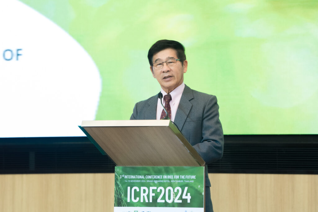 เมื่อวันที่ 14 พฤศจิกายน 2567 ณ โรงแรมแกรนด์ ริชมอนด์ สไตลิช คอนเวนชั่น จ.นนทบุรี : ศูนย์กลางความรู้ด้านวิทยาศาสตร์และการวิจัยข้าวของประเทศไทย (Hub of Rice) โดยศูนย์วิทยาศาสตร์ข้าว มหาวิทยาลัยเกษตรศาสตร์ ศูนย์พันธุวิศวกรรมและเทคโนโลยีชีวภาพแห่งชาติ (ไบโอเทค) สำนักงานพัฒนาวิทยาศาสตร์และเทคโนโลยีแห่งชาติ (สวทช.) และสำนักงานการวิจัยแห่งชาติ (วช.) ร่วมกับภาคีเครือข่ายด้านการวิจัยข้าวของประเทศไทย จัดงานประชุมวิชาการนานาชาติ ครั้งที่ 3 เรื่องข้าวเพื่ออนาคต (3rd International Conference on Rice for The Future 2024: ICRF 2024) กำหนดจัดขึ้น 2 วัน ระหว่างวันที่ 14-15 พฤศจิกายน 2567 เพื่อส่งเสริมและพัฒนาการวิจัยข้าว ขับเคลื่อนความก้าวหน้าทางวิทยาศาสตร์และเทคโนโลยีที่จะนำไปสู่การพัฒนาการเกษตรที่ยั่งยืนและสร้างการประกันความมั่นคงทางอาหารในอนาคต รวมถึงเป็นเวทีสร้างเครือข่ายนักวิจัย ผู้เชี่ยวชาญ และนักวิชาการข้าวทั้งในและต่างประเทศ โดยมี ศ.กิตติคุณ นพ.สุทธิพร จิตต์มิตรภาพ ประธานคณะทำงานที่ปรึกษาเพื่อการพัฒนาศูนย์รวมผู้เชี่ยวชาญ (Hub of Talents) และศูนย์กลางด้านความรู้ (Hub of Knowledge) สำนักงานการวิจัยแห่งชาติ (วช.) เป็นประธานเปิดการประชุม พร้อมด้วย ศ.ดร.ดอกรัก มารอด รองอธิการบดีฝ่ายวิจัยและความเป็นสากล ม.เกษตรศาสตร์ ดร.สิทธิโชค ตั้งภัสสรเรือง รักษาการรองผู้อำนวยการไบโอเทค สวทช. และ รศ.ดร.ศิวเรศ อารีกิจ ผู้อำนวยการศูนย์วิทยาศาสตร์ข้าว ร่วมเปิดงาน และมีผู้เข้าร่วมงานมากกว่า 300 คน จาก 14 ประเทศ