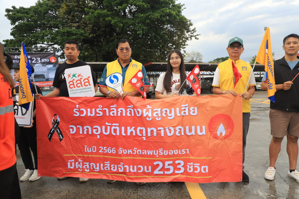 โดยนายปรัชญา เปปะตัง รองผู้ว่าราชการจังหวัดลพบุรี กล่าวว่า คณะรัฐมนตรี มีมติเมื่อวันที่ 15 มกราคม 2556 ได้กำหนดให้วันอาทิตย์สัปดาห์ที่สามของเดือนพฤศจิกายนของทุกปีเป็น “วันโลกรำลึกถึงผู้สูญเสียจากอุบัติเหตุทางถนน” เพื่อรำลึกถึง ผู้บาดเจ็บ และเสียชีวิตจากอุบัติเหตุทางถนน รัฐบาลตระหนักถึงความสำคัญในการป้องกันและลดอุบัติเหตุทางถนน และมุ่งส่งเสริมความเป็นอยู่ที่ดีให้แก่ประชาชน ภายใต้แผนแม่บทความปลอดภัยทางถนน พ.ศ. 2564 – 2570 และเป้าหมายการพัฒนาที่ยั่งยืน รวมทั้งเน้นการบังคับใช้กฎหมายอย่างเข้มข้น การยกระดับมาตรฐานด้านความปลอดภัยของยานพาหนะ โดยให้หน่วยงานที่เกี่ยวข้องทุกภาคส่วนทั้งภาครัฐ ภาคเอกชนและภาคประชาสังคม บูรณาการการดำเนินงานร่วมกัน เพื่อให้บรรลุเป้าหมายในการลดจำนวน ผู้บาดเจ็บสาหัสจากอุบัติเหตุทางถนน ในปี พ.ศ. 2570 ตลอดจนลดจำนวนผู้เสียชีวิต ตามที่กำหนดในแผนดังกล่าว และขอส่งกำลังใจถึงผู้บาดเจ็บและครอบครัวของผู้สูญเสียทุกท่าน ได้ร่วมกันเป็นกำลังสำคัญในการรณรงค์และสร้างสังคมที่มีความปลอดภัยจากอุบัติเหตุทางถนน เพื่อมุ่งสู่การสัญจรทางถนนที่ปลอดภัยสำหรับทุกคน” ตลอดไป