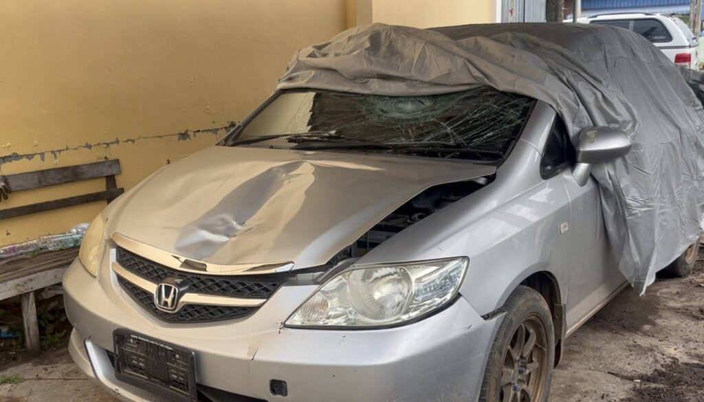 เพชรบูรณ์ เก๋งซิ่งชนจักรยานดับ คาดว่าเจ้าของรถ น่าจะตกใจศพที่ติดหน้ารถ จึงดึงร่างลงมาทิ้งที่บริเวณซอย หน้าหมู่บ้าน