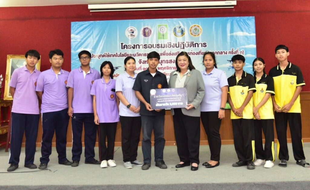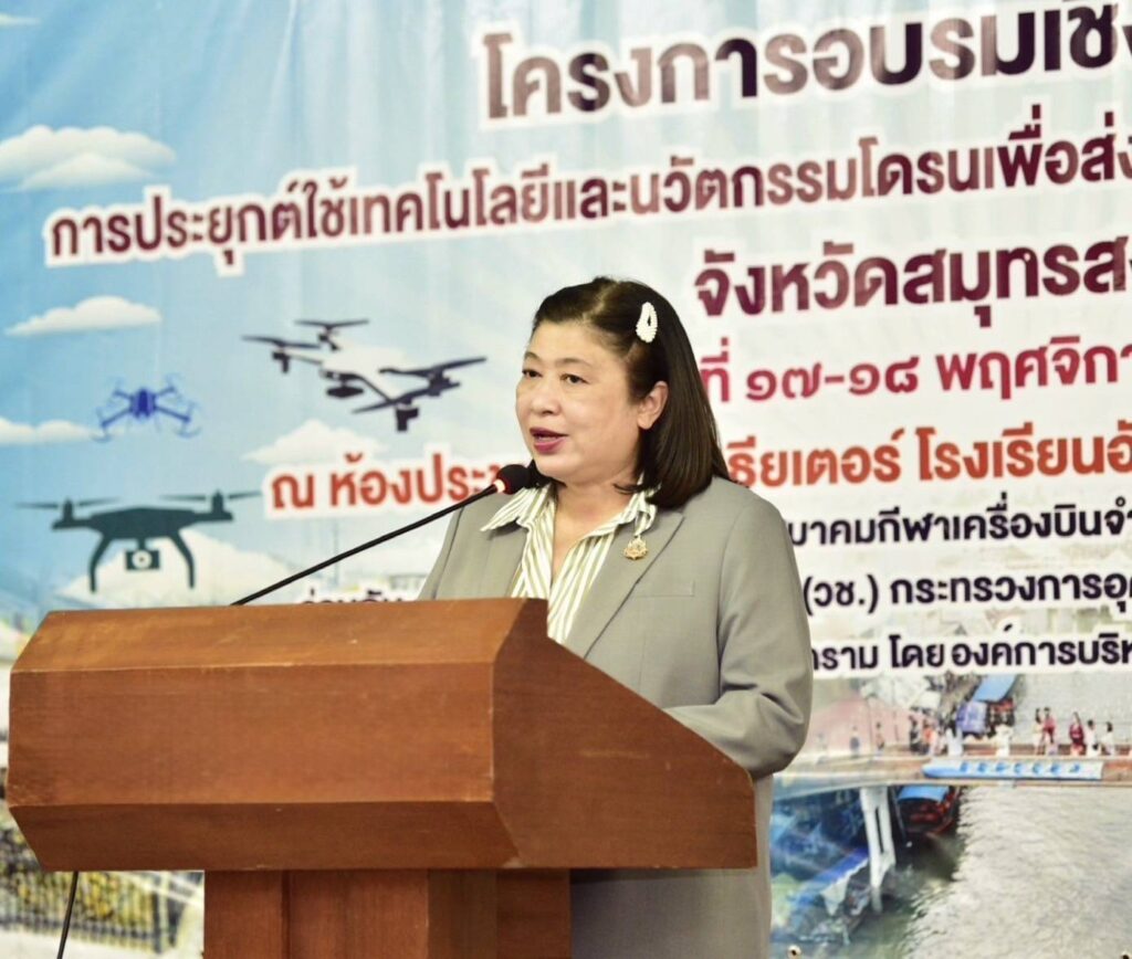 ดร.วิภารัตน์ ดีอ่อง ผู้อำนวยการสำนักงานการวิจัยแห่งชาติ (ผอ.วช.) กล่าวว่า (วช.) ส่งเสริมการพัฒนาสิ่งประดิษฐ์และนวัตกรรม ให้เกิดการใช้ประโยชน์ในการพัฒนาพื้นที่ในหลากหลายด้าน โดยการพัฒนาเทคโนโลยีเกี่ยวกับโดรน การคิดค้นและพัฒนาซอฟต์แวร์สำหรับการควบคุมโดรนแปรอักษร สามารถนำมาขยายผลในการพัฒนาสมรรถนะเยาวชน การส่งเสริมการท่องเที่ยว การเกษตร หรือการบรรเทาสาธารณภัย ซึ่งการนำเทคโนโลยี “โดรนแปรอักษร” มาประยุกต์ใช้ ถือเป็นตัวอย่างการทำงานเชิงบูรณาการที่สามารถขยายผลเพื่อสนับสนุนการพัฒนาการท่องเที่ยว โดยการอบรมครั้งนี้ มีเป้าหมายเพื่อถ่ายทอดองค์ความรู้และเทคโนโลยีปัญญาประดิษฐ์ให้แก่บุคลากรด้านการท่องเที่ยว เยาวชน และประชาชนทั่วไป เพื่อสร้างโอกาสนำไปประยุกต์ใช้ในการพัฒนาการท่องเที่ยวแหล่งต่างๆของจังหวัดสมุทรสงคราม