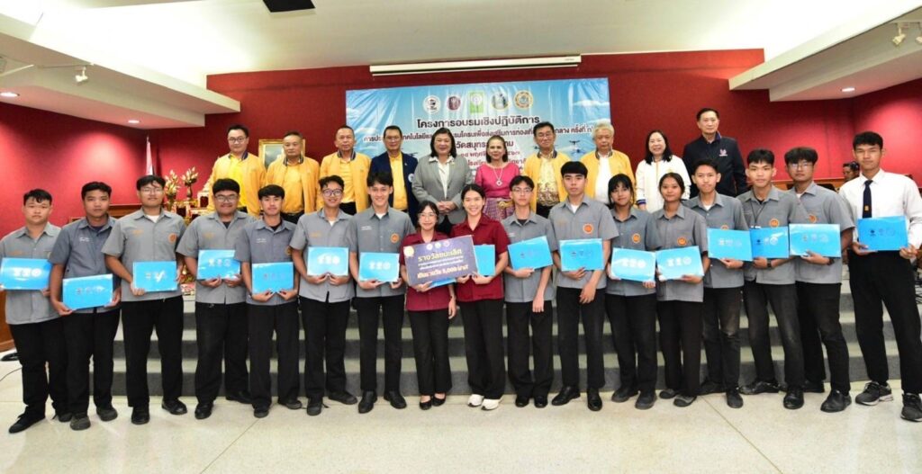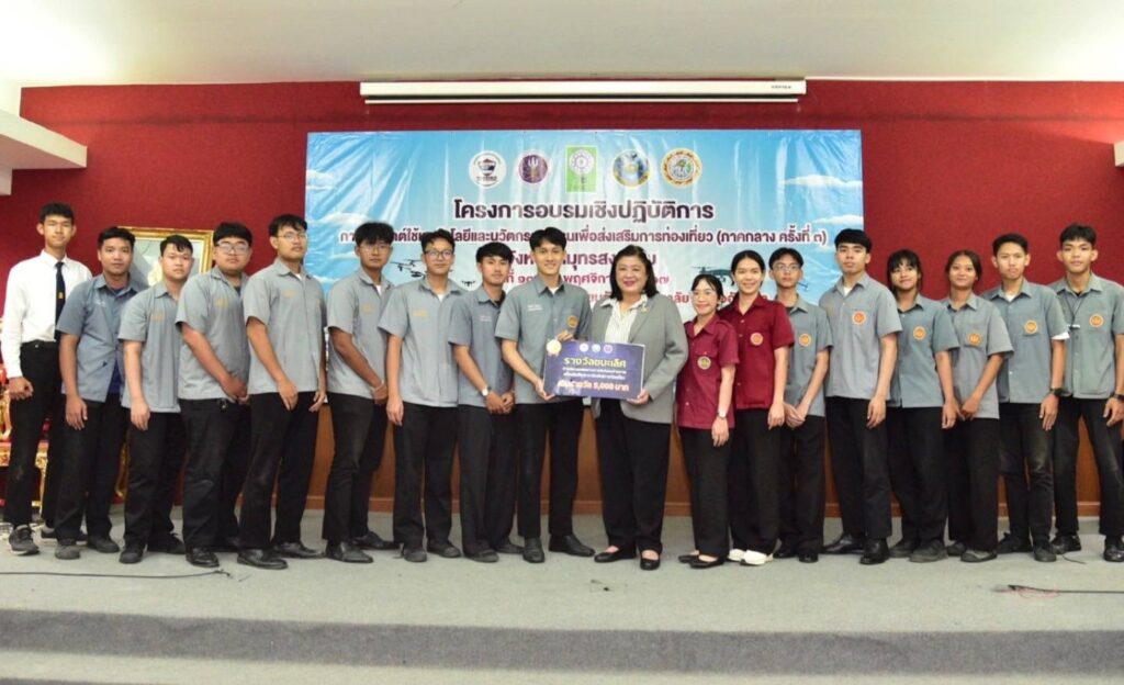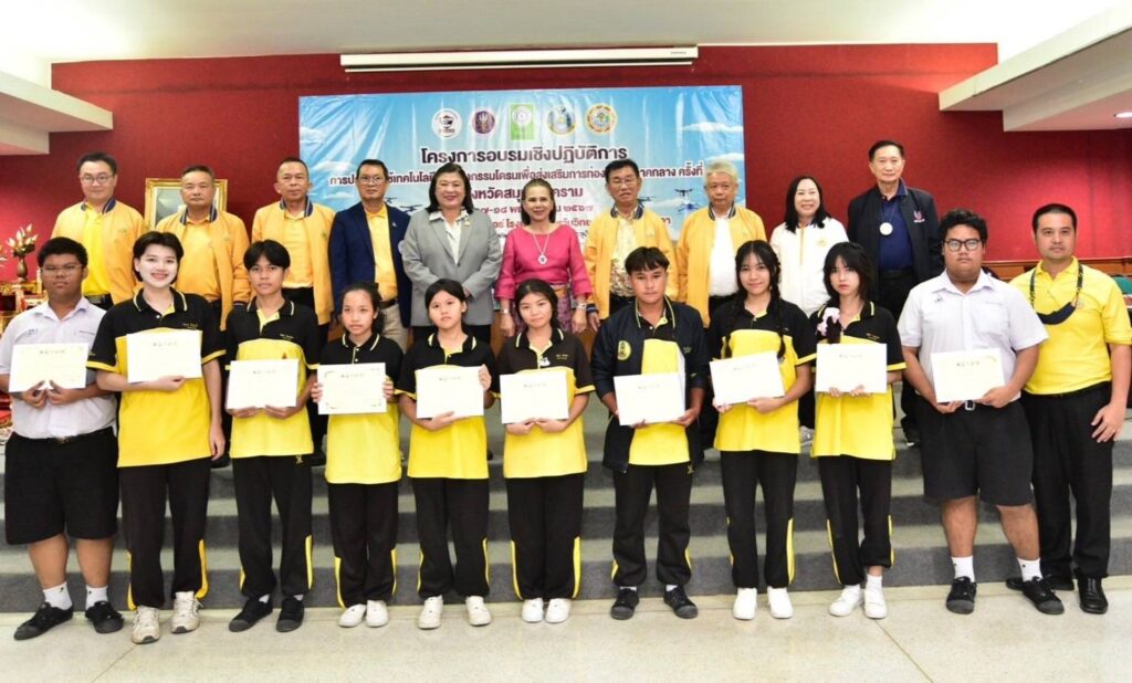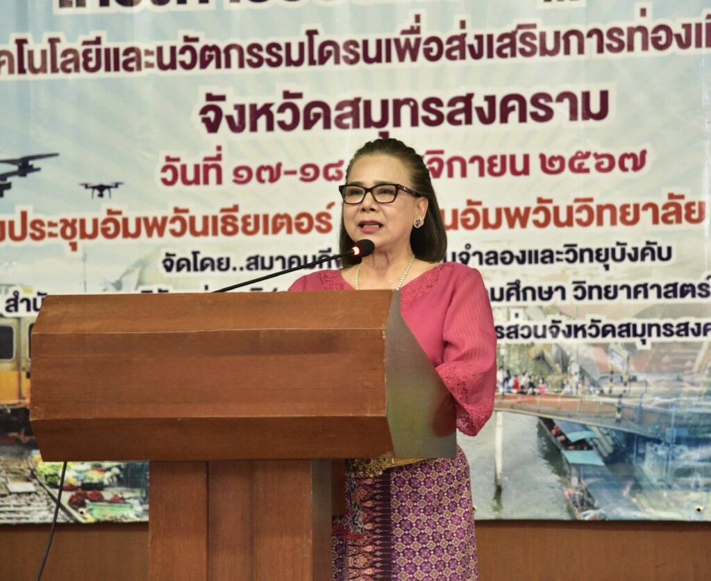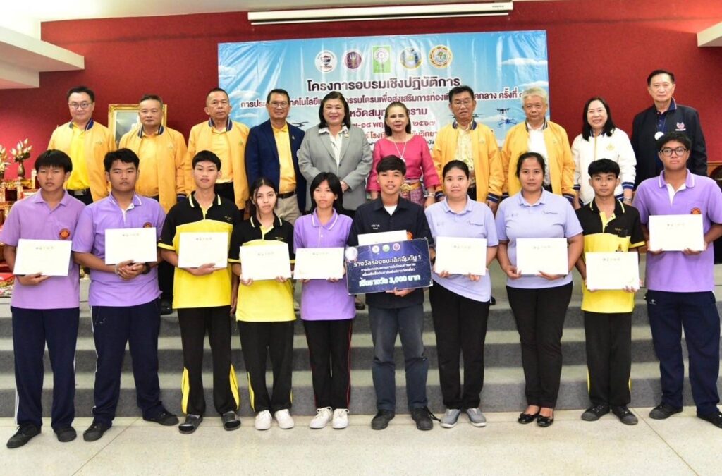 เมื่อวันอาทิตย์ที่ 17 พฤศจิกายน 2567 องค์การบริหารส่วนจังหวัดสมุทรสงคราม ร่วมกับ สำนักงานการวิจัยแห่งชาติ (วช.) กระทรวงการอุดมศึกษา วิทยาศาสตร์ วิจัยและนวัตกรรม (อว.) และสมาคมกีฬาเครื่องบินจำลองและวิทยุบังคับ จัดการอบรมเชิงปฏิบัติการในหัวข้อ “การประยุกต์ใช้เทคโนโลยีและนวัตกรรมโดรนเพื่อส่งเสริมการท่องเที่ยว: ภาคกลาง” โดยมี ดร.วิภารัตน์ ดีอ่อง ผู้อำนวยการสำนักงานการวิจัยแห่งชาติ เป็นประธานในพิธีมอบรางวัลและประกาศนียบัตร พร้อมนี้นางสาวกาญจน์สุดา ปานะสุทธะ นายกองค์การบริหารส่วนจังหวัดสมุทรสงคราม กล่าวต้อนรับ ณ ห้องประชุมอัมพวันเธียเตอร์ โรงเรียนอัมพวันวิทยาลัย จ.สมุทรสงคราม