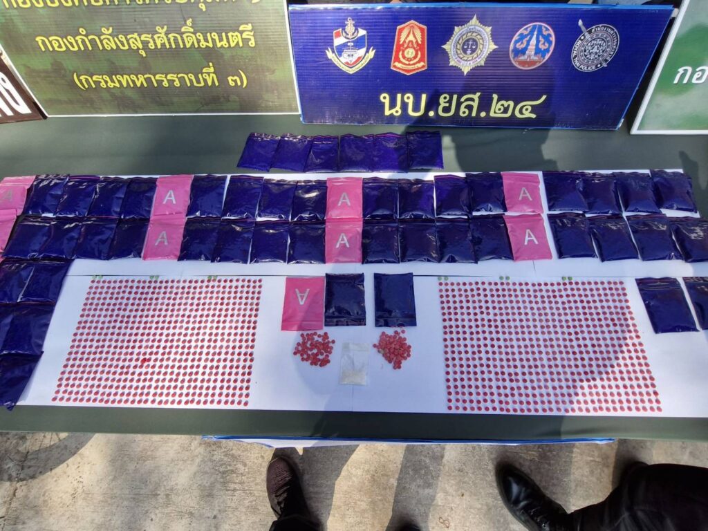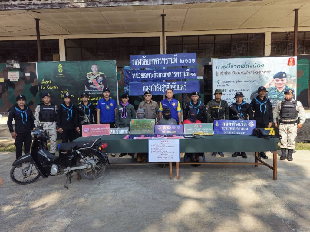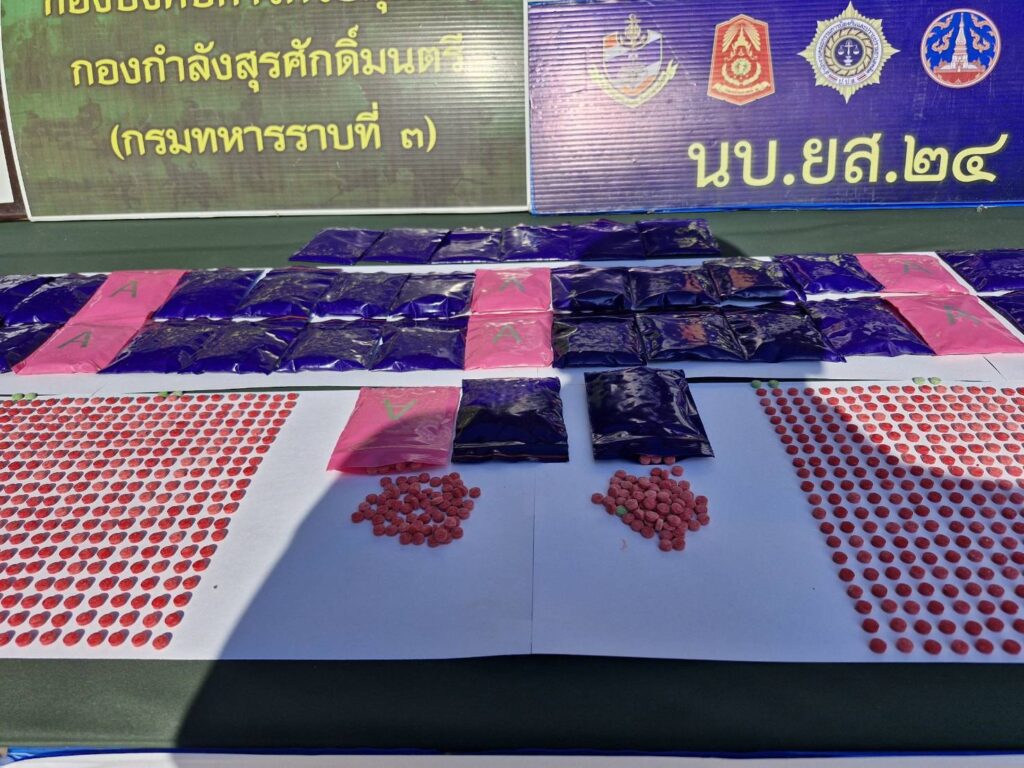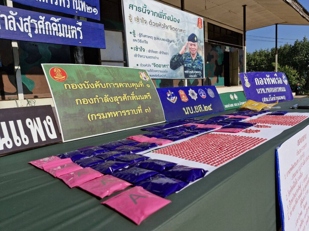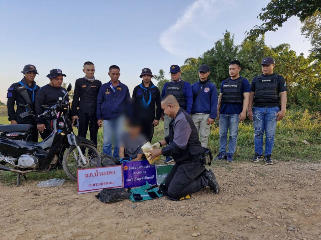เมื่อ 17 พ.ย.67,1000 ที่กองร้อยเฉพาะกิจทหารพรานที่ 2101 หน่วยเฉพาะกิจกรมทหารที่ 21 บ้านปากห้วยม่วง ตำบลนาเข อำเภอบ้านแพง จังหวัดนครพนม นายชินวัต ทองปรีชา นายอำเภอบ้านแพง เป็นประธานแถลงข่าวร่วมกับหน่วยงานความมั่นคงในพื้นที่ ภายใต้การอำนวยการของ นบ.ยส.24 และกกล.สุรศักดิ์มนตรี จับผู้ต้องหาพร้อมของกลางยาบ้า จำนวน 12,000 เม็ด บริเวณ ทุ่งนา บ.แพงใต้ ม.11 ต.บ้านแพง อ.บ้านแพง จ.นครพนม โดย ร.ท.วันชาติ เหมือนปืน ผบ.ร้อย.ฉก.ทพ.2101 ฉก.ทพ.21 (หน่วยงานหลัก) ได้รับแจ้งจากแหล่งข่าว ว่าจะมีขบวนการยาเสพติดจากฝั่ง สปป.ลาว นำยาเสพติด(ยาบ้า) มาส่งให้ขบวนการยาเสพติดฝั่งประเทศไทย โดยใช้เรือกีบหาปลาเป็นพาหนะ จึงได้สั่งการ ชุดปฏิบัติการที่ 3 (ท่าลาด) เข้าทำการเฝ้าตรวจพื้นที่ตามภาพข่าว บริเวณทุ่งนาพื้นที่ บ.แพงใต้ ม.11 ต.บ้านแพง อ.บ้านแพง จ.นครพนม ตรวจพบชาย จำนวน 1 คน ขับขี่รถ จยย.ลงไปจอดบริเวณใกล้กับตลิ่งกันทรุดแม่น้ำโขง และได้มีเรือกีบขับมาจากฝั่ง สปป.ลาว อย่างรวดเร็ว แล้วมาจอดบริเวณตลิ่งกันทรุดแม่น้ำโขง จุดดังกล่าวแล้วมีบุคคลถือกระเป๋าสะพายสีดำเดินขึ้นมา จากนั้นชายคนดังกล่าวได้เดินลงไปรับเอากระเป๋าสะพายสีดำต้องสงสัยนั้นมา และรีบขับขี่รถ จยย.มุ่งหน้าขึ้นมายังถนนหลัก ชุดปฏิบัติการที่ 3 (ท่าลาด) ที่ทำการเฝ้าตรวจอยู่จึงแสดงตัว เพื่อขอทำการตรวจค้น ชายคนดังกล่าวได้ทำการขัดขืนจะวิ่งหลบหนี แต่ กพ.ของหน่วยสามารถควบคุมตัวไว้ได้ จึงทำการตรวจค้นกระเป๋าสะพายสีดำต้องสงสัย พบเป็นยาบ้า จำนวน 6 มัด ประมาณ 12,000 เม็ด, รถ จยย.ยี่ห้อ ฮอนด้า รุ่นซุปเปอร์คัพ สีดำ ไม่ติดแผ่นป้ายทะเบียน และโทรศัพท์มือถือ จำนวน 2 เครื่องบรรจุอยู่ภายใน ผลการสอบสวนเบื้องต้น ยอมรับว่ายาเสพติด(ยาบ้า)ทั้งหมด เป็นของตนเองจริง โดยได้มารับตามที่มีคนสั่งการและจะนำเข้าไปยังพื้นที่ตอนใน หน่วยจึงได้นำ ผู้ต้องหาพร้อมของกลางทั้งหมด มายัง บก.ร้อย.ฉก.ทพ.2101 เพื่อทำการตรวจนับอย่างละเอียดและประสานหน่วยงานความมั่นคงในพื้นที่ร่วมเพื่อดำเนินการ ตรวจสอบ และสอบสวนขยายผลเพิ่มเติม พร้อมจะนำผู้ต้องหาพร้อมของกลางทั้งหมด นำส่ง จนท.ตร.สภ.บ้านแพง เพื่อดำเนินคดีตามกฎหมายต่อไป
