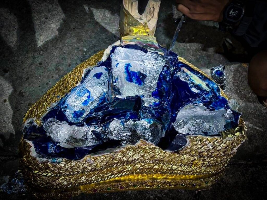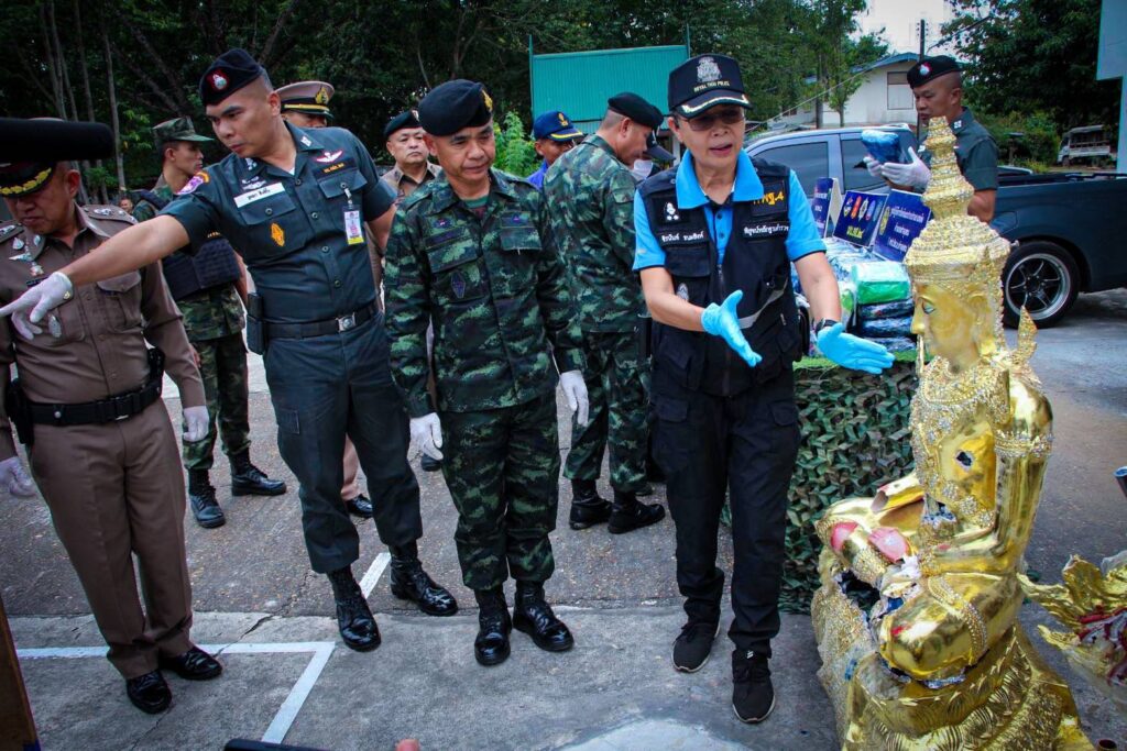 โดยเมื่อ วันที่ 16 พ.ย.67 เวลา 22.00 น. ชุดปราบปรามยาเสพติด กองร้อยเฉพาะกิจตำรวจตระเวนชายแดนที่ 237 ได้รับแจ้งจากชาวบ้านที่กำลังจะออกไปกรีดยางว่าพบเห็นพระพุทธรูป จำนวน 3 องค์ ที่ถูกวางไว้ข้างทางห่างจากแหล่งชุมชนหมู่บ้านพอสมควร บริเวณทางเข้าหมู่บ้านดอนแดงน้อย ต.ท่าจำปา อ.ทำอุเทน จ.นครพนม เป็นที่น่าสงสัย จึงรีบแจ้งต่อเจ้าหน้าที่ฯ เพื่อให้นำไปตรวจสอบและคาดว่าอาจจะมียาเสพติดซุกซ่อนอยู่ภายใน เมื่อเข้าไปสำรวจตรวจสอบเบื้องต้นพบว่ามียาเสพติดที่มีลักษณะวางซุกซ่อนในองค์พระพุทธรูปเป็นจำนวนมากจริง ก่อนถูกหล่อด้วยน้ำยาเรซิ่นอยู่ภายใน แต่อย่างไรก็ตามทางเจ้าหน้าที่ยังคงวางกำลังดักซุ่มรอ เพื่อหวังจะมีผู้มารับพระจำนวนดังกล่าวจนกระทั่งถึงเช้า เมื่อไม่มีผู้ใดมารับหรือแสดงตัวเป็นเจ้าของ จึงได้ทำการตรวจยึดและนำพระพุทธรูปทั้ง 3 องค์ มายังกองร้อยเฉพาะกิจตำรวจตระเวนชายแดนที่ 237 เพื่อทำการตรวจสอบอย่างละเอียด จึงพบว่าในองค์พระพุทธรูปทั้ง 3 องค์นั้น มียาเสพติดให้โทษให้โทษประเภทที่ 1 (เฮโรอีน) จำนวน 32 แท่งและยาไอซ์ จำนวน 117 ห่อ /กิโลกรัม สำหรับยาไอซ์ที่ตรวจยึดไว้ได้ ถูกจัดเรียงไว้ภายในขององค์พระพุทธรูปก่อนใช้น้ำยาเรซิ่นเทหล่อทับเพื่อพรางสายตาเจ้าหน้าที่ สำหรับการตรวจยึดยาเสพติดจำนวนมากในครั้งนี้ อาศัยความไว้เนื้อเชื่อใจระหว่างชาวบ้านกับเจ้าหน้าที่แลกเปลี่ยนข้อมูลข่าวสารด้วยดีตลอดมา จึงทำให้ผลการตรวจยึดของกลางจำนวนดังกล่าวเป็นผลสำเร็จก่อนที่ ยาเสพติดจำนวนนี้จะทะลักเข้าไปสู่พื้นที่ชั้นในต่อไป
