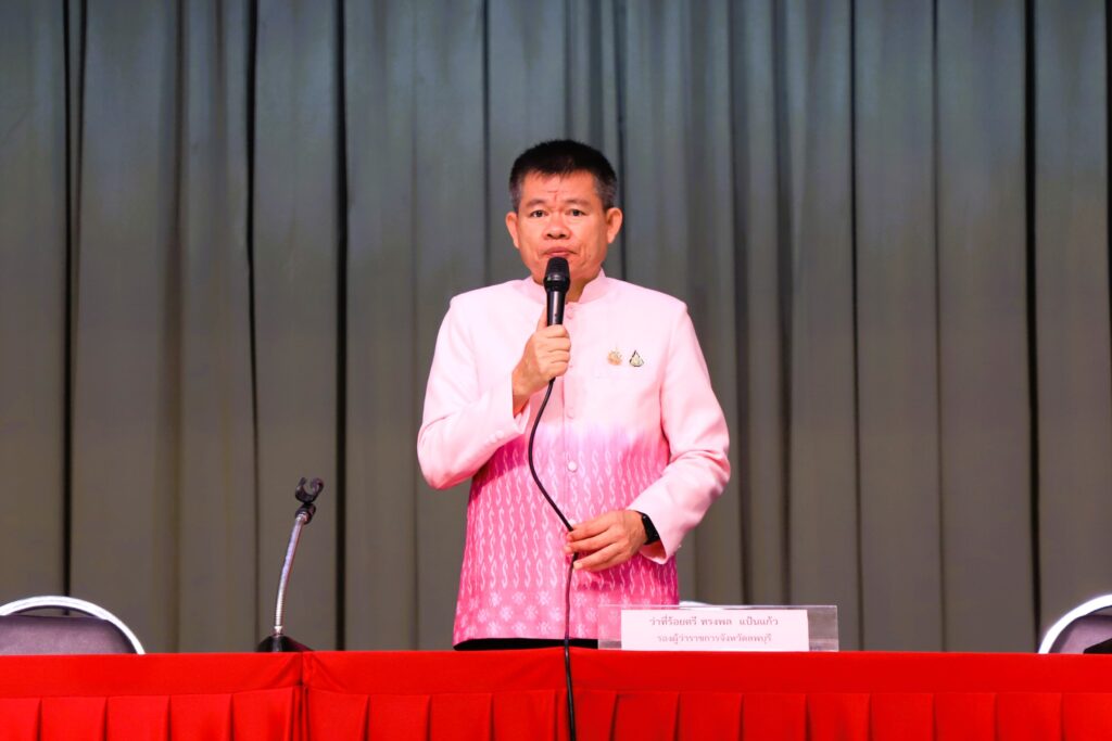 วันที่ 19 พฤศจิกายน 2567 เวลา 09.00 น. ที่อาคารอเนกประสงค์เทศบาลเมืองเขาสามยอด อำเภอเมืองลพบุรี จังหวัดลพบุรี ว่าที่ร้อยตรี ทรงพล แป้นแก้ว รองผู้ว่าราชการจังหวัดลพบุรี เป็นประธานในพิธีเปิดการประชุมชี้แจงให้ความรู้เรื่องโครงการเพิ่มทักษะด้านอาชีพแก่นักเรียนที่ไม่ได้เรียนต่อหลังจบการศึกษาภาคบังคับ จังหวัดลพบุรี ประจำปีงบประมาณ พ.ศ. 2568 โดยมี นางสาวจิดาภา เนียมศรี นักวิชาการแรงงานชำนาญการพิเศษ รักษาราชการแทนจัดหางานจังหวัดลพบุรี พร้อมด้วย หัวหน้าส่วนราชการสังกัดกระทรวงแรงงาน ผู้บริหารสถานศึกษา ครูแนะแนว ครู อาจารย์และบุคลากรทางการศึกษาจากทั้ง 11 อำเภอ ตลอดจนคณะกรรมการขับเคลื่อนโครงการเพิ่มทักษะด้านอาชีพแก่นักเรียนที่ไม่ได้เรียนต่อหลังจบการศึกษาภาคบังคับโดยผู้เข้าร่วมประชุมทั้งสิ้น จำนวน 205 คน