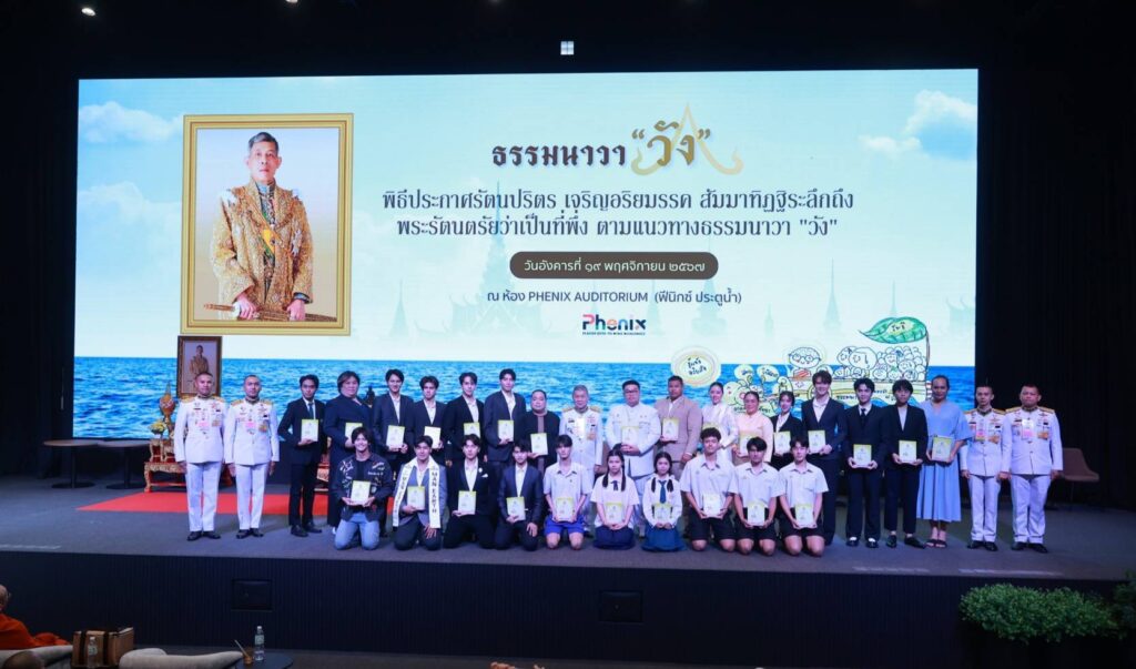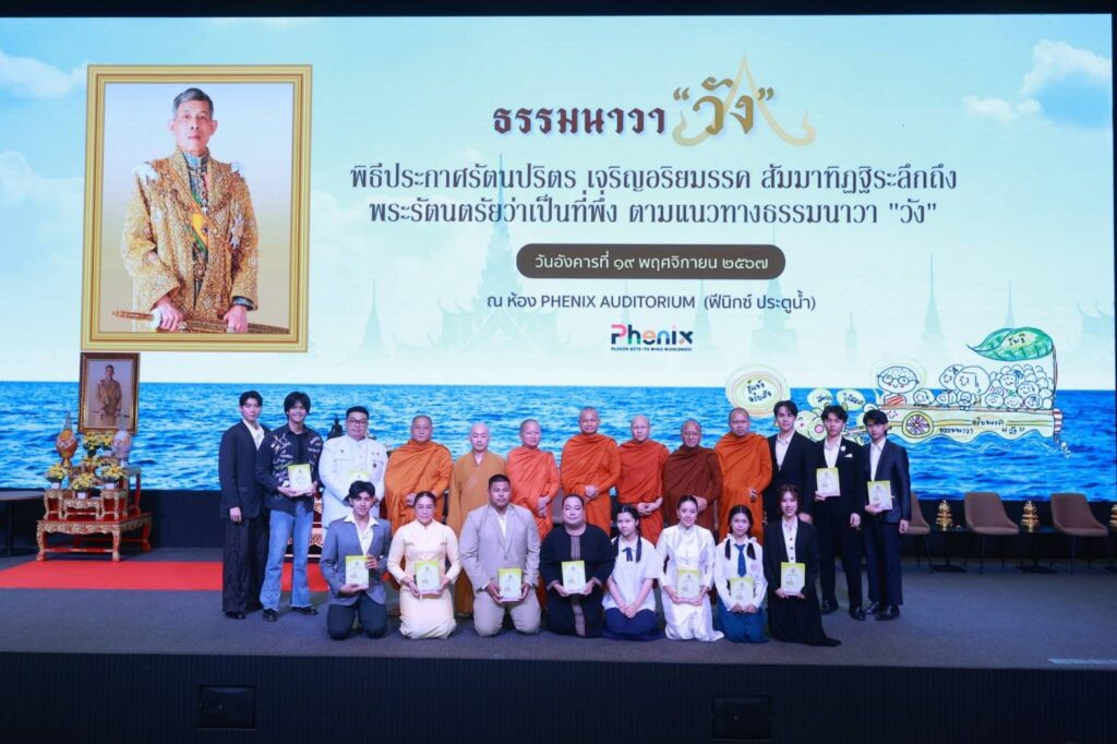 จากนั้นประธานในพิธีมอบชุดหนังสือธรรมนาวา “วัง” พระราชทานแก่ผู้บริหารโครงการฟีนิกซ์ ประตูน้ำ ศิลปิน ดารา นักแสดง และผู้ใฝ่ในธรรม หน้าพระบรมฉายาลักษณ์พระบาทสมเด็จพระเจ้าอยู่หัว รัชกาลที่ ๑๐ อาทิ ดร.ศุภาชัย ผ่องสวัสดิ์ ประธานกรรมการสภาศิลปินส่งเสริมพระพุทธศาสนาแห่งประเทศไทย หน่วยเผยแพร่ศีลธรรมทางพระพุทธศาสนา กรมการศาสนา กระทรวงวัฒนธรรม, ปฏิพัทธ์ กันฉาย มิสเตอร์แลนด์สเคปนครปฐม2025, เพ็ญจันทร์ วงศ์สมเพ็ชร โปรดิวเซอร์ภาพยนตร์เรื่อง “Endpresso ปณิธานหวานน้อย”, อาจารย์วินไท ไขนามเลข ศาสตร์ดวงดาว (ธนินทร์ วงศ์ปัญญาเสถียร), ถาวโรจน์ หรูเกียรติไชย (หมอไวท์ หมอดูโอ๊บป้า), รัฐ ริมธีรกุล ผู้ช่วยดำเนินงานสมาชิกสภาผู้แทนราษฎร พรรคเพื่อไทย, นพฤทธิ์ ศรีบุตร, ชญาภา บีเบอร์ ผู้บริหาร เอ็มบีเวอร์ เทรนนิ่ง สตูดิโอ, ณมน-พัชรวลัย พงษ์ภมร นักแสดงจากละคร มรกตสีรุ้ง ช่อง 7HD, บาส-ธนพล อยู่เจริญกิจ, ริชชี่-ปราบดา สระทองอ่อน และ ภูมิพัฒน์ ธนาพัฒน์ตระกูล 3 นักแสดงจากภาพยนตร์เรื่อง “Endpresso ปณิธานหวานน้อย”, ธนชนก ละมูลเจริญ คริส Presidents/Artist Manager ESM MEDIA ENTERTAINMENT, กิตติกร คิ้วไธสงค์ ดิว Top 15 Mister Supranational Thailand 2023 / Top 7 Mister World Thailand 2024, ปิยวิชญ์ ไตรโชค ศิลปิน/influencer, ด.ญ. วายุมันตรา วงศ์ปัญญาเสถียร โรงเรียนสาธิต มศว องค์รักษ์ นักแสดงเรื่อง กัษธิษฐาน ช่อง 9MCOT, วรินธร เนียมสกุล คณะนิเทศศาสตร์ มหาวิทยาลัยกรุงเทพ, สุธาวี คงนิสบัน โรงเรียนเซนต์โยเซฟ จ.นครสวรรค์ ชั้นมัธยม เป็นต้น ณ ลานกิจกรรม ชั้น G โครงการฟีนิกซ์ประตูน้ำ กรุงเทพมหานคร