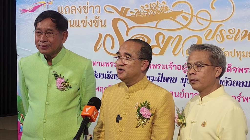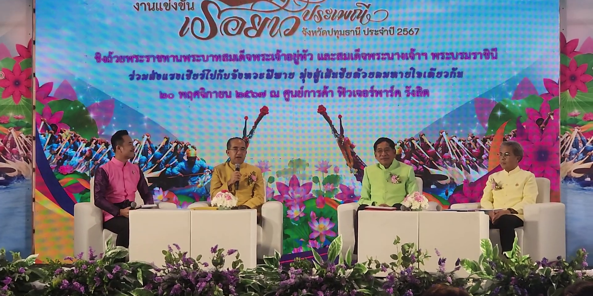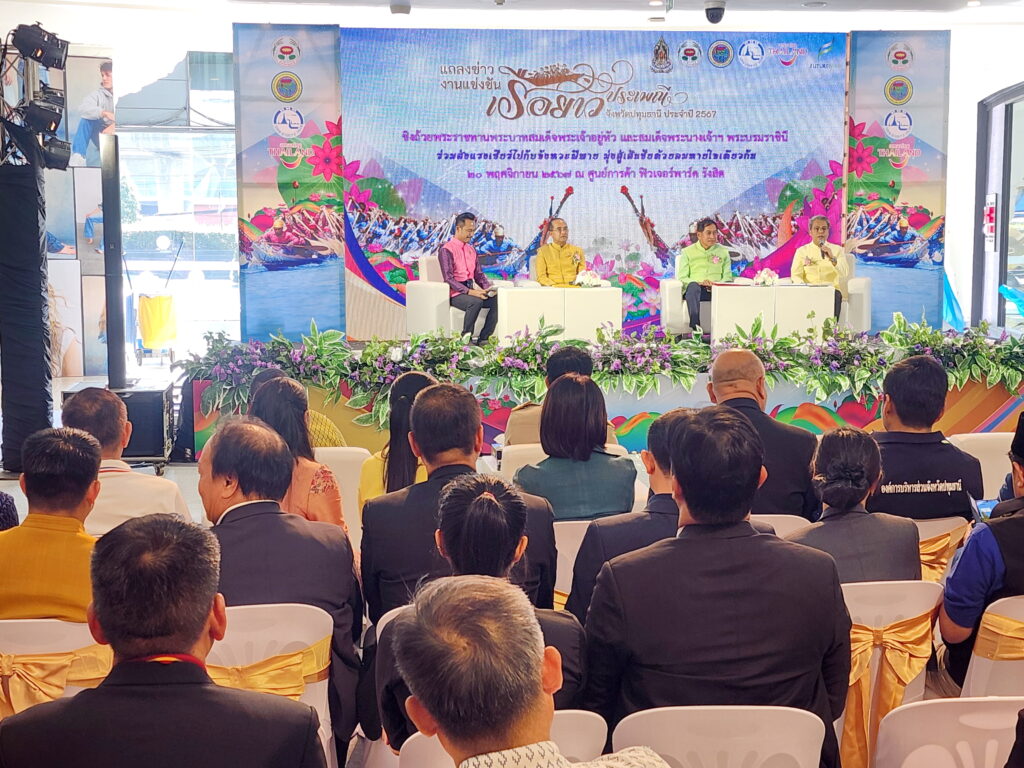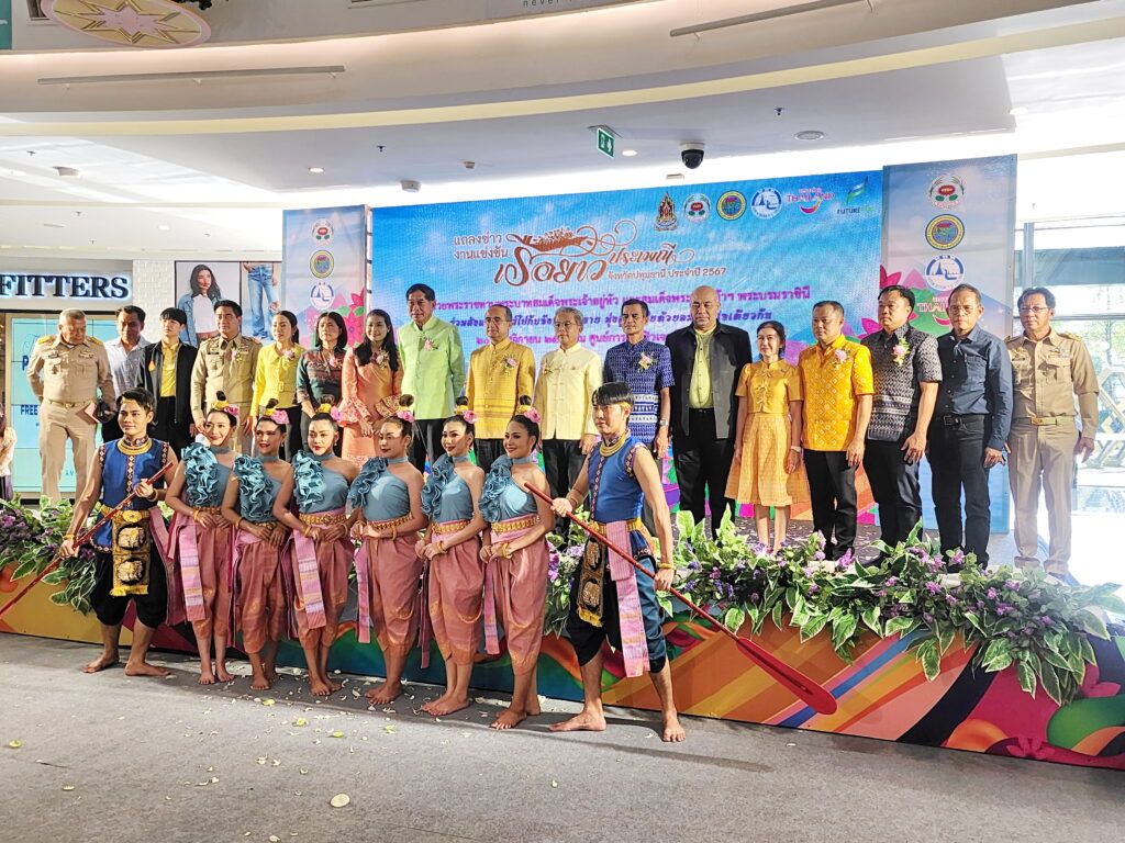 วันที่ 20 พฤศจิกายน 2567 ที่ผ่านมาที่ บริเวณลาน Zpotlight ชั้น G ศูนย์การค้าฟิวเจอร์พาร์ค รังสิต ตำบลประชาธิปัตย์ อำเภอธัญบุรี จังหวัดปทุมธานี นายสมคิด จันทมฤก ผู้ว่าราชการจังหวัดปทุมธานี , พลตำรวจโท คำรณวิทย์ ธูปกระจ่าง นายกองค์การบริหารส่วนจังหวัดปทุมธานี และ นายชาญยุทธ เศวตสุวรรณ ผู้อำนวยการสำนักงานการท่องเที่ยวแห่งประเทศไทย (ททท.) สำนักงานกรุงเทพมหานคร ร่วมกันแถลงข่าวโครงการจัดงานแข่งขันเรือยาวประเพณี จังหวัดปทุมธานี ประจำปี 2567 ชิงถ้วยพระราชทานพระบาทสมเด็จพระเจ้าอยู่หัว และสมเด็จพระนางเจ้าฯ พระบรมราชินี ระหว่างวันที่ 3 – 5 ธันวาคม 2567 ณ แม่น้ำเจ้าพระยา บริเวณสวนเทพปทุม ตำบลบางปรอก อำเภอเมืองปทุมธานี
