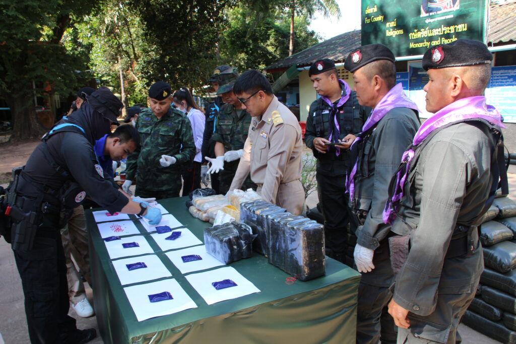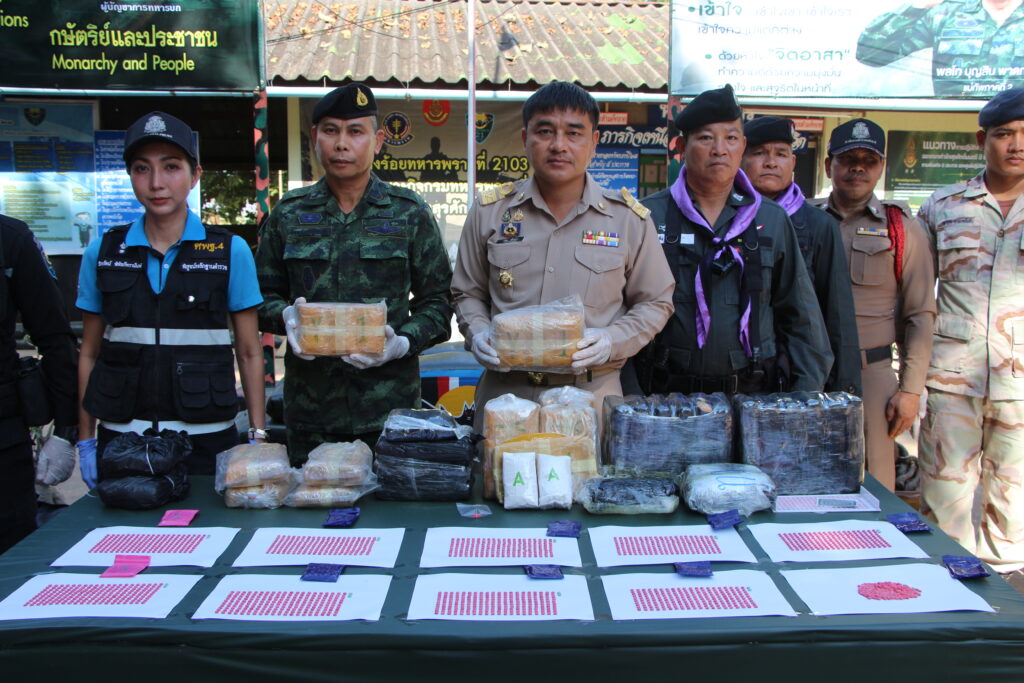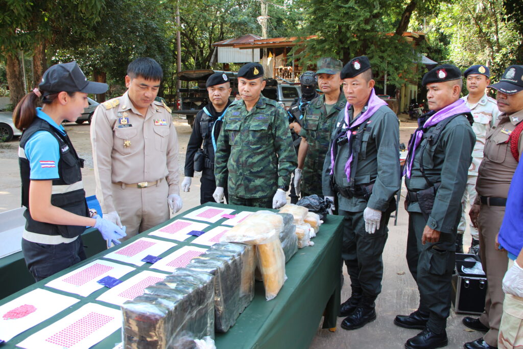 เมื่อวันที่ 20 พฤศจิกายน 2567 เวลา 13.30 น. ที่กองร้อยเฉพาะกิจทหารพรานที่ 2103 หน่วยเฉพาะกิจกรมทหารพรานที่ 21 กองกำลังสุรศักดิ์มนตรี บ้านเหล่าหนาด ตำบลพนอม อำเภอท่าอุเทน จังหวัดนครพนม พันเอก กัญญณัต ไชยโอชะ รองผู้อำนวยการส่วนอำนวยการหน่วยบัญชาการสกัดกั้นและปราบปรามยาเสพติด สารตั้งต้น และเคมีภัณฑ์ชายแดนภาคตะวันออกเฉียงเหนือ (รอง ผอ.ส่วนอำนวยการ นบ.ยส.24 (2) ) เป็นผู้แทน พลโทบุญสิน พาดกลาง แม่ทัพภาคที่ 2/ผู้บัญชาการหน่วยบัญชาการสกัดกั้นและปราบปรามยาเสพติด สารตั้งต้น และเคมีภัณฑ์ชายแดนภาคตะวันออกเฉียงเหนือ (มทภ.2/ผบ.นบ.ยส.24) แถลงข่าวการตรวจยึดยาเสพติด ร่วมกับนายปรีชา สอิ้งทอง นายอำเภอท่าอุเทน นาวาโทจักรกฤษ วังกรานต์ หัวหน้าสถานีเรือบ้านแพง หน่วยเรือรักษาความสงบเรียบร้อยตามลำแม่น้ำโขงเขตนครพนม ร้อยเอก ธนากร นาเหล็ก ผู้บังคับกองร้อยเฉพาะกิจทหารพรานที่ 2103 หน่วยเฉพาะกิจกรมทหารพรานที่ 21 กองกำลังสุรศักดิ์มนตรี พร้อมหน่วยงานความมั่นคงในพื้นที่อำเภอท่าอุเทน โดยเมื่อวันที่ 19 พฤศจิกายน 2567 เวลาประมาณ 09.50 น. กองบังคับการควบคุมที่ 1(ร.3) กองกำลังสุรศักดิ์มนตรี ได้รับการประสานจากกองร้อยเฉพาะกิจทหารพรานที่ 2103 ว่าได้รับแจ้งจากพลเมืองดี พบวัตถุต้องสงสัยคาดว่าจะเป็นยาบ้า วางอยู่บริเวณริมฝั่งแม่น้ำโขง พื้นที่ บ้านตาลปากน้ำ หมู่ที่ 2 ตำบลไชยบุรี อำเภอท่าอุเทน จังหวัดนครพนม จึงได้จัดกำลังเข้าทำการพิสูจน์ทราบตามที่ได้รับแจ้ง เมื่อไปถึงจุดที่ได้รับแจ้ง พบกระสอบสีเหลือง จำนวน 2 กระสอบวางอยู่บริเวณริมฝั่งแม่น้ำโขง เจ้าหน้าที่จึงได้ทำการตรวจสอบภายในกระสอบ พบเป็นยาเสพติดให้โทษประเภท 1 (ยาบ้า) จำนวน 170,000 เม็ด และยาเสพติดให้โทษประเภท 2 (ฝิ่น) น้ำหนัก 3.2 กิโลกรัม จากนั้นจึงประสานหน่วยงานความมั่นคงในพื้นที่อำเภอท่าอุเทน จังหวัดนครพนม ร่วมทำการเข้าตรวจสอบและนำของกลางทั้งหมดส่งให้เจ้าหน้าที่ตำรวจ สถานีตำรวจภูธรท่าอุเทน จังหวัดนครพนม เพื่อดำเนินการตามกฎหมายต่อไป โดยการแจ้งเบาะแสนำมาซึ่งการตรวจยึดยาเสพติดในครั้งนี้เกิดจากการที่ประชาชน พบเห็นสิ่งผิดปกติแล้วแจ้งเจ้าหน้าที่ทหารพรานและหน่วยงานความมั่นคงในพื้นที่เข้าทำการตรวจสอบ ซึ่งถือว่าประชาชนในพื้นที่ได้ให้ความร่วมมือกับเจ้าหน้าที่รัฐในการป้องกันสกัดกั้นไม่ให้ยาเสพติดเข้ามาในพื้นที่บ้านตาลปากน้ำ หมู่ที่ 2 ตำบลไชยบุรี อำเภอท่าอุเทน จังหวัดนครพนม
