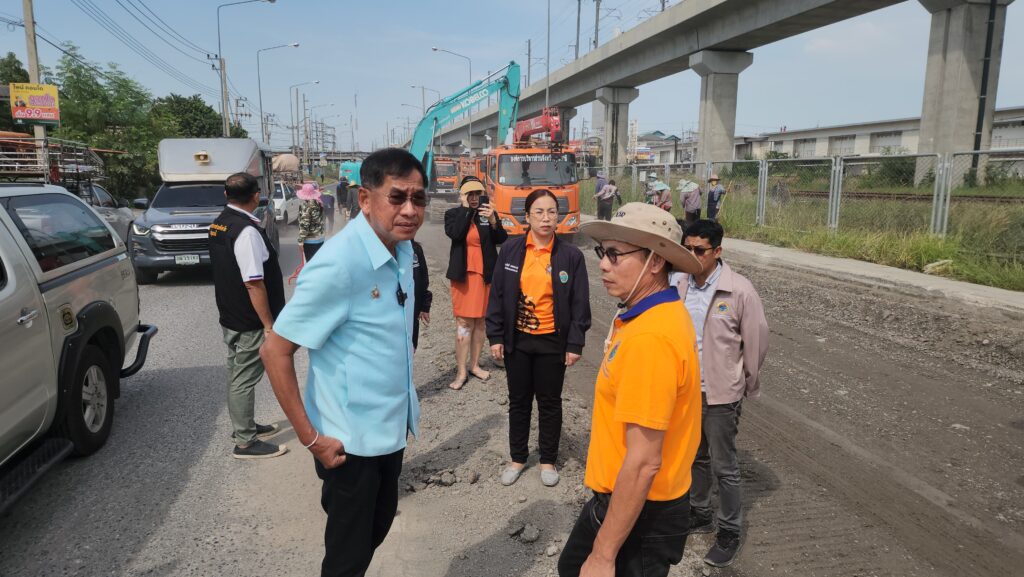 วันที่ 21 พฤศจิกายน 2567 ที่ถนนเลียบทางรถไฟ (Local Road) คลองรังสิตประยูรศักดิ์ – สะพานปทุมธานี – รังสิต จังหวัดปทุมธานี พลตำรวจโท คำรณวิทย์ ธูปกระจ่าง นายกองค์การบริหารส่วนจังหวัดปทุมธานี และเจ้าหน้าที่ อบจ.ปทุมธานีได้ติดตามความคืบหน้าและเร่งดำเนินการปรับปรุงผิวถนนหลังจากที่ร่วมลงนามบันทึกข้อตกลงการส่งมอบและรับมอบถนนเลียบทางรถไฟ หลังจากประชาชนได้รับผลกระทบมานาน