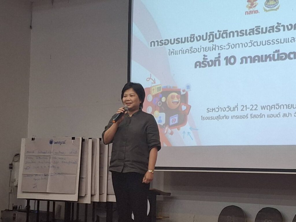 สื่อสารในยุคใหม่และเข้ามามีส่วนร่วมได้ อย่างเหมาะสมในพื้นที่ของตนเอง อีกทั้งเพื่อพัฒนากลไกความร่วมมือกับกระทรวงวัฒนธรรม นักวิชาการ ตลอดจนเครือข่ายภาคประชาชน ซึ่งถือเป็นกลไกที่สำคัญ ในการมีส่วนร่วมของทุกภาคส่วนอย่างแท้จริง ครอบคลุมทุกจังหวัด โดยมีเครือข่ายเฝ้าระวังทางวัฒนธรรมและคุ้มครองผู้บริโภคสื่อในพื้นที่ภาคเหนือตอนล่าง ประกอบด้วย จังหวัดสุโขทัย อุตรดิตถ์ พิษณุโลก