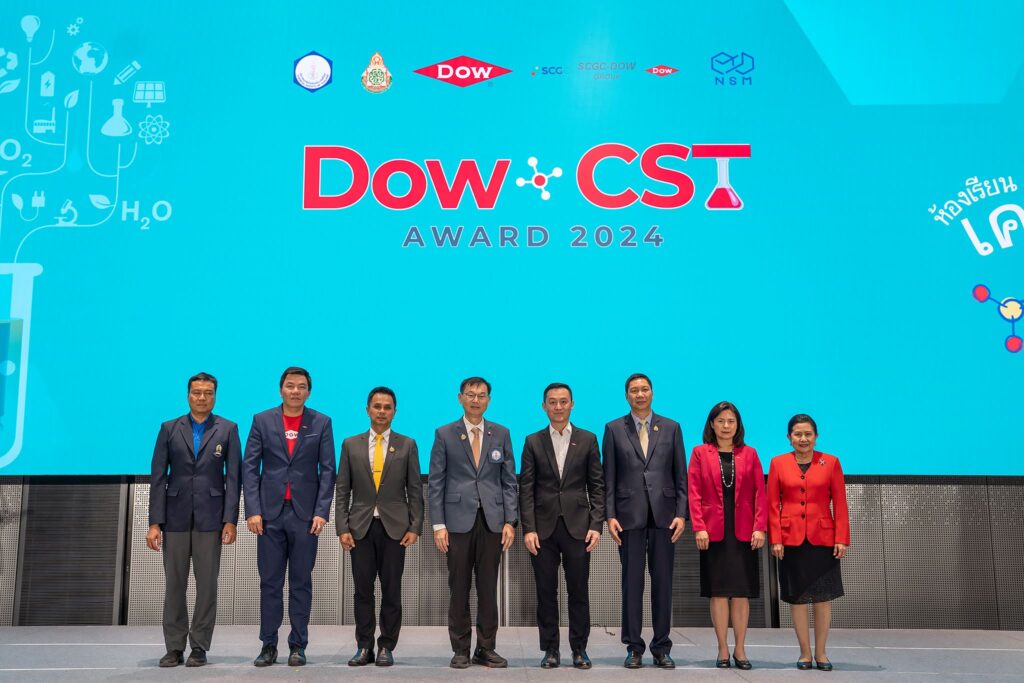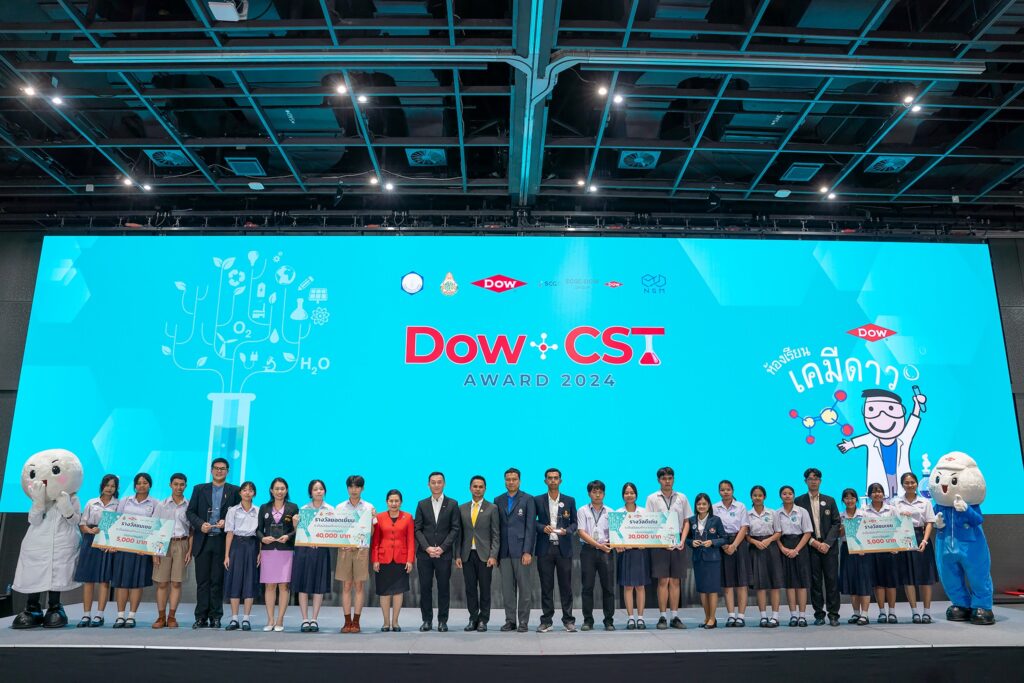 ผลการแข่งขัน DOW-CST Award ประจำปี 2567 ในระดับมัธยมศึกษาตอนปลาย ประกอบด้วย 1) รางวัลยอดเยี่ยม ได้รับเงินรางวัลมูลค่า 40,000 บาท พร้อมโล่เกียรติยศจากศาสตราจารย์ ดร.สมเด็จพระเจ้าน้องนางเธอ เจ้าฟ้าจุฬาภรณวลัยลักษณ์ อัครราชกุมารี กรมพระศรีสวางควัฒน วรขัตติยราชนารี ได้แก่ โรงเรียนศรีสวัสดิ์วิทยาคารจังหวัดน่าน จากโครงงานการทำความสะอาดเครื่องเงินจากสิ่งของที่ใช้ในชีวิตประจำวันโดยใช้หลักการของไฟฟ้าเคมี 2) รางวัลดีเด่น ได้แก่ โรงเรียนเตรียมอุดมศึกษาเปร็งวิสุทธาธิบดี จ.ฉะเชิงเทรา จากโครงงานการผลิตและทดสอบคุณสมบัติของโซเดียมไฮดรอกไซด์ (NaOH) ได้รับเงินรางวัลมูลค่า 20,000 บาท 3) รางวัลชมเชย จำนวน 3 รางวัล ได้แก่ โรงเรียนเวียงสระ จ.สุราษฎร์ธานี โรงเรียนอ่างทองปัทมโรจน์วิทยาคม จ.อ่างทอง และโรงเรียนจัตุรัสวิทยาคาร จ.ชัยภูมิ ได้รับเงินรางวัลทีมละ 5,000 บาท