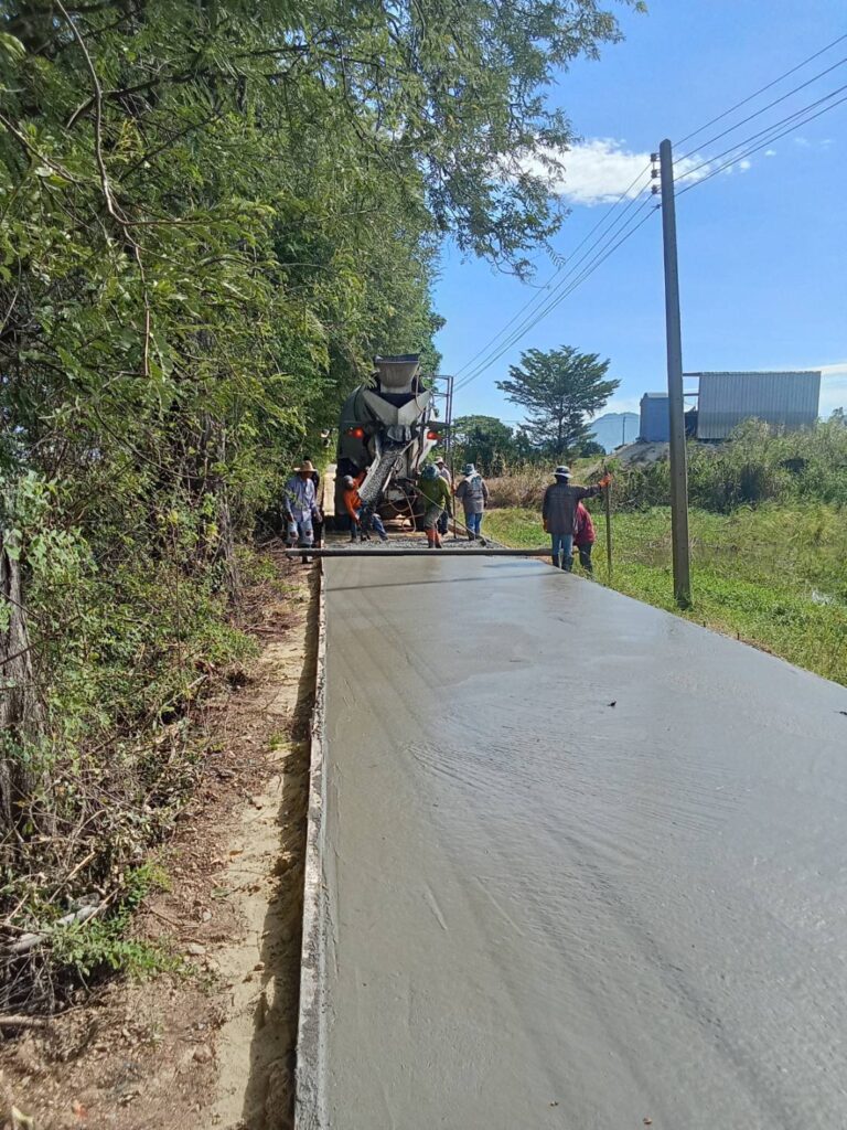 ลงพื้นที่หมู่ที่ 6 บ้านเนินยาว (เส้นบ้านสามหลัง) เพื่อดูงานก่อสร้างถนนคอนกรีตจากทางหลวงหมายเลข 3024 ถึง บ้านสามหลัง ผิวจราจรกว้าง 3.00 ม. หนา 0.15 ม. ระยะทาง 210 ม.