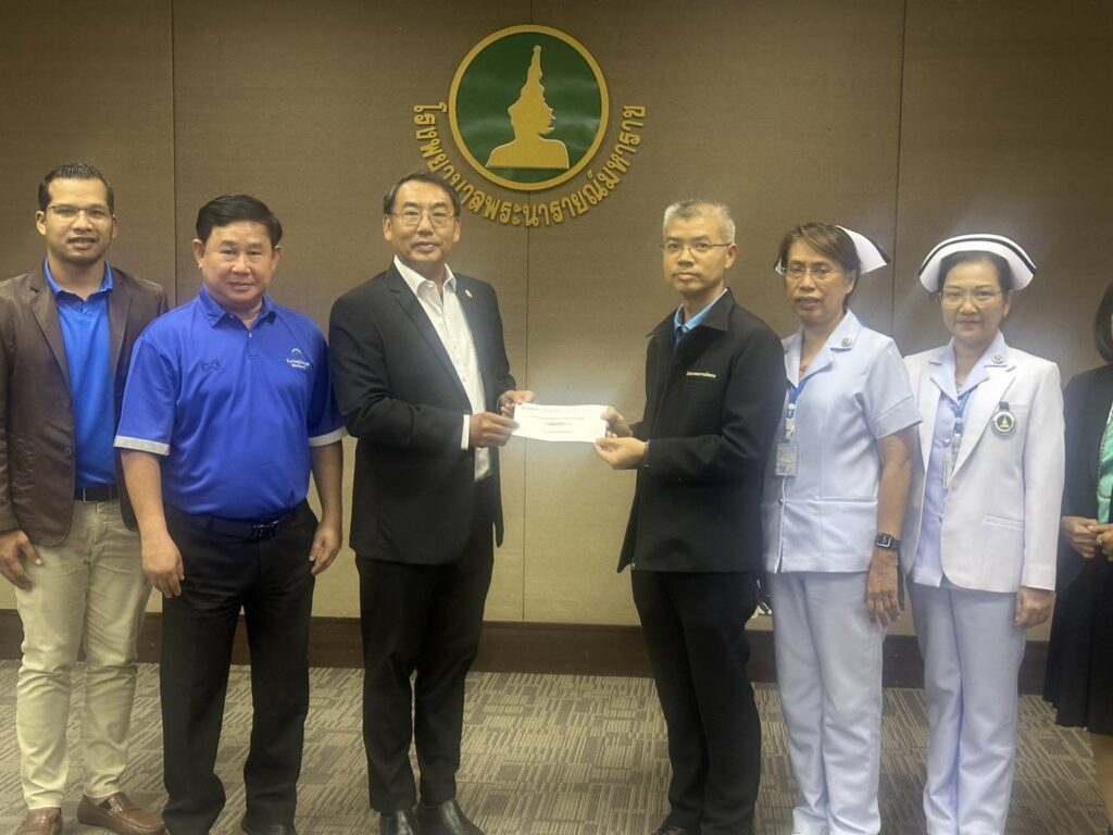 บริจาคเงินเป็นจำนวน 1,000,000 บาท เพื่อสมทบทุนจัดซื้ออุปกรณ์ทางการแพทย์ โดยมีนายธภัทร ติระวัฒน์ รองผู้อำนวยการฝ่ายบริหารโรงพยาบาลพระนารายณ์ มหาราช คณะผู้บริหารและบุคลากรทางการแพทย์ร่วมกันรับมอบเงินบริจาค