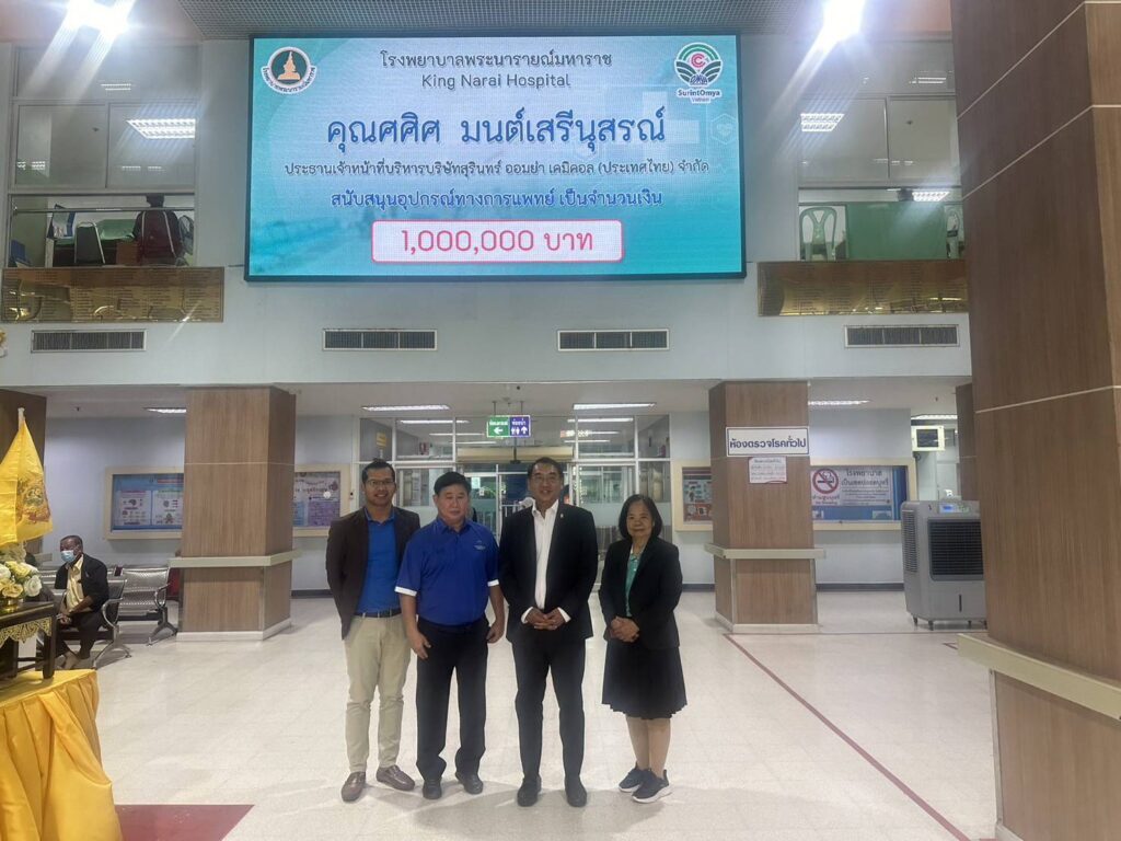 สุรินทร์ ออมย่า เคมิคอล(ประเทศไทย) จํากัด มอบเงิน 1,000,000 บาท ให้แก่ โรงพยาบาลพระนารายณ์มหาราช