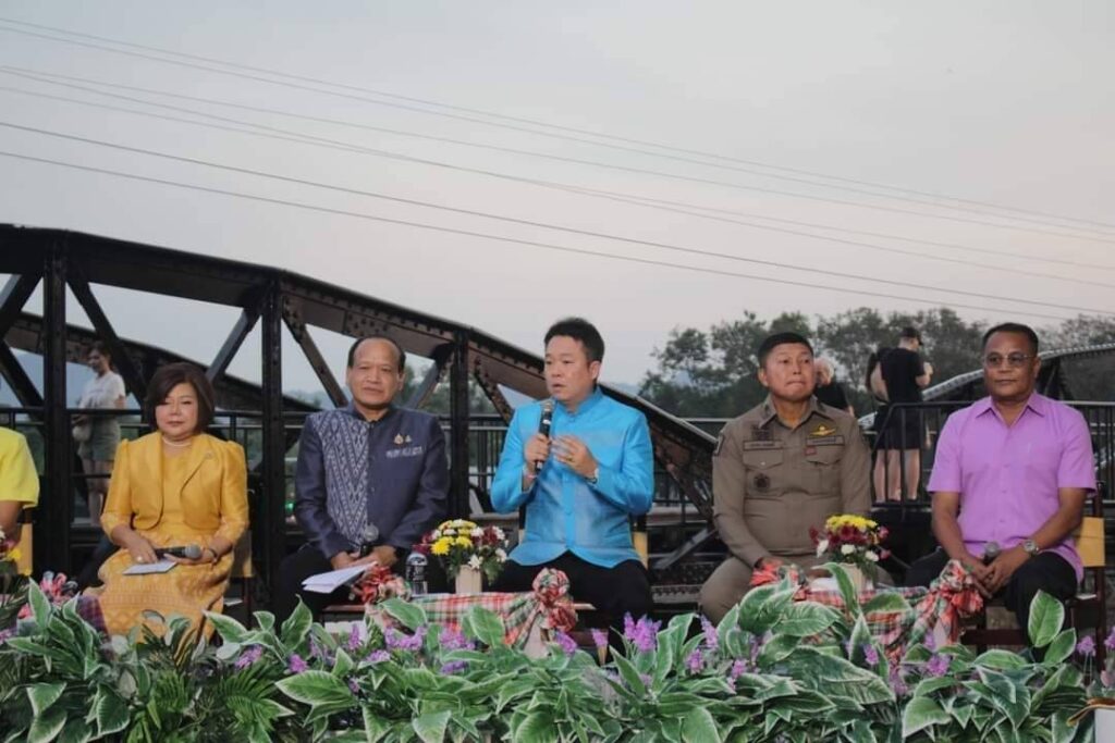 วันนี้(22 พฤศจิกายน 2567) เวลา 17.00 น. ณ บริเวณสะพานข้ามแม่น้ำแคว ตำบลท่ามะขาม อำเภอเมืองกาญจนบุรี จังหวัดกาญจนบุรี นายรณภพ เวียงสิมมา รองผู้ว่าราชการจังหวัดกาญจนบุรี รักษาราชการแทนผู้ว่าราชการจังหวัดกาญจนบุรี เป็นประธานการแถลงข่าวการจัดงานสัปดาห์สะพานข้ามแม่น้ำแควและงานกาชาดจังหวัดกาญจนบุรี ประจำปี 2567 พร้อมด้วย นางวิมลทิพย์ เวียงสิมมา รองนายกเหล่ากาชาดจังหวัดกาญจนบุรี รักษาการนายกเหล่ากาชาดจังหวัดกาญจนบุรี นายฑรัท เหลืองสะอาด ปลัดจังหวัดกาญจนบุรี นายแพทย์ประวัติ กิจธรรมกูลนิจ นายกองค์การบริหารส่วนจังหวัดกาญจนบุรี พันตำรวจเอก บรรจง อมฤทธิ์ รองผู้บังคับการตำรวจภูธรจังหวัดกาญจนบุรี นายอุกฤษ บุษบงค์ รองนายแพทย์สำนักงานสาธารณสุขจังหวัดกาญจนบุรี นายประสิทธิ์ ปิ่มบุญ ท่องเที่ยวและกีฬาจังหวัดกาญจนบุรี ร่วมแถลงข่าวฯ โดยมี นายวุฒิพงษ์ สุภัควนิช รองผู้ว่าราชการจังหวัดกาญจนบุรี หัวหน้าส่วนราชการ เจ้าหน้าที่ที่เกี่ยวข้อง สื่อมวลชน และชาวจังหวัดกาญจนบุรีร่วมรับฟังการแถลงข่าวฯ