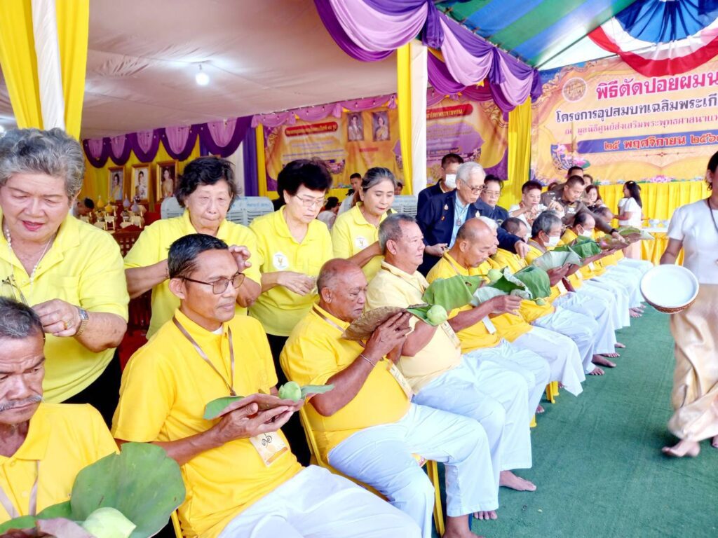 เมื่อวันที่ ๒๕ พฤศจิกายน ๒๕๖๗ เวลา ๐๙.๓๐ น.ณ มูลนิธิศูนย์ส่งเสริมพระพุทธศาสนาแห่งประเทศไทย เลขที่ ๑ หมู่ที่ ๒ ถนนตลิ่งชัน-สุพรรณบุรี ตำบลหน้าไม้ อำเภอลาดหลุมแก้ว จังหวัดปทุมธานี ผู้สื่อข่าวรายงานว่าพลอากาศเอกเกษม อยู่สุข สำนักงานราชเลขานุการในพระองค์ เป็นประธานฝ่ายฆราวาส พิธีตัดปอยผมนาคโครงการ อุปสมบทเฉลิมพระเกียรติ ๙๙ รูป เพื่อถวายราชกุศล เนื่องในโอกาส”วันชาติ” “วันพ่อแห่งชาติ” ๕ ธันวาคม ๒๕๖๖ เพื่อน้อมรำลึกในพระกรุณาที่คุณ อันหาที่สุดมิได้และน้อมถวายพระราชกุศลแด่พระบาทสมเด็จพระบรมชนกาธิเบศร มหาภูมิพลอดุลยเดชมหาราชบรมนาถบพิตร ผู้ทรงพระคุณอันประเสริฐ รัชกาลที่ ๙ พร้อมด้วยพลตรีชาตรีแสงทองศรีกมล ผู้ทรงคุณวุฒิทหารบก พลเรือตรีชวิช วงษ์รัตน์ ผู้อำนวยการสำนักงานตรวจสอบฯกองทัพเรือ แขกผู้มีเกียรติ และผู้เข้าร่วมอุปสมบทเฉลิมพระเกียรติ ร่วมพิธี กันเป็นจำนวนมาก มีพระครูวชิรรัตนสุนทร ผู้ช่วยเจ้าอาวาสวัดหงส์รัตนาราม วรวิหารประธานกรรมการมูลนิธิส่งเสริมพระพุทธศาสนาแห่งประเทศไทย (ประธานฝ่ายสงฆ์ ) พิธีตัดปล่อยผมหน้าโครงการเฉลิมพระเกียรติ เนื่องในโอกาส”วันชาติ” “วันพ่อแห่งชาติ” ๕ ธันวาคม ๒๕๖๗ เพื่อน้อมระลึกในพระกรุณาที่คุณ อันหาที่สุดมิได้และน้อมถวายพระราชกุศล แด่พระบาทสมเด็จพระบรมชนกาธิเบศร มหาภูมิพลอดุลยเดช มหาราชบรมนาถบพิตรผู้ทรงพระคุณอันประเสริฐ รัชกาลที่ ๙ มีวัตถุประสงค์ดังนี้ ๑. เพื่อเฉลิมฉลองพระเกียรติเนื่องในโอกาส”วันชาติ” “วันพ่อแห่งชาติ ” ๕ ธันวาคม ๒๕๖๖ และถวายพระราชกุศลพระบาทสมเด็จพระบรมชนกาธิเบศรมหาภูมิพลอดุลยเดชมหาราช บรมราชบพิตร รัชกาลที่ ๙ ๒.เพื่อให้กุลบุตรและพุทธศาสนิกชนทั้งหลายสำนึกรักหวงแหนประเทศไทยและเชื่อมั่นในความเป็นเอกราชชาติไทยและรักษาประเพณีและวัฒนธรรมอันดีงามของชาติไทยให้คงอยู่ต่อไป ๓. เพื่อเสริมสร้างความรักสามัคคีความสมานและฉันในหมู่มวลพี่น้องชาวไทยทุกคนทุกกลุ่มและเป็นแบบอย่างที่ดีแก่อนุชนคนรุ่นหลังจึงได้ถือปฏิบัติตามโอกาสต่อๆไป ๔. เพื่อให้กุลบุตรและพุทธศาสนิกชนทั้งหลายได้มีโอกาสศึกษาและเรียนรู้หลักเศรษฐกิจพอเพียงศาสตร์แห่งพระราชาเพิ่มมากขึ้น ๕.เพื่อให้กุลบุตรและอุตสาหกรรมทั้งหลายได้มีโอกาสใกล้ชิดและสินทรัพย์ในสถาบันชาติพระพุทธศาสนาและซึมซับในสถาบันพระมหากษัตริย์ และราชวงศ์ทุกๆพระองค์ และ ๖.เพื่อให้กุลบุตรและพุทธศาสนิกชนทั้งหลายได้มีโอกาสใกล้ชิดและซึมซับหลักธรรมคำสอนพระพุทธศาสนาและได้มีโอกาสสร้างบุญกุศลสะสมเป็นบารมีสืบ