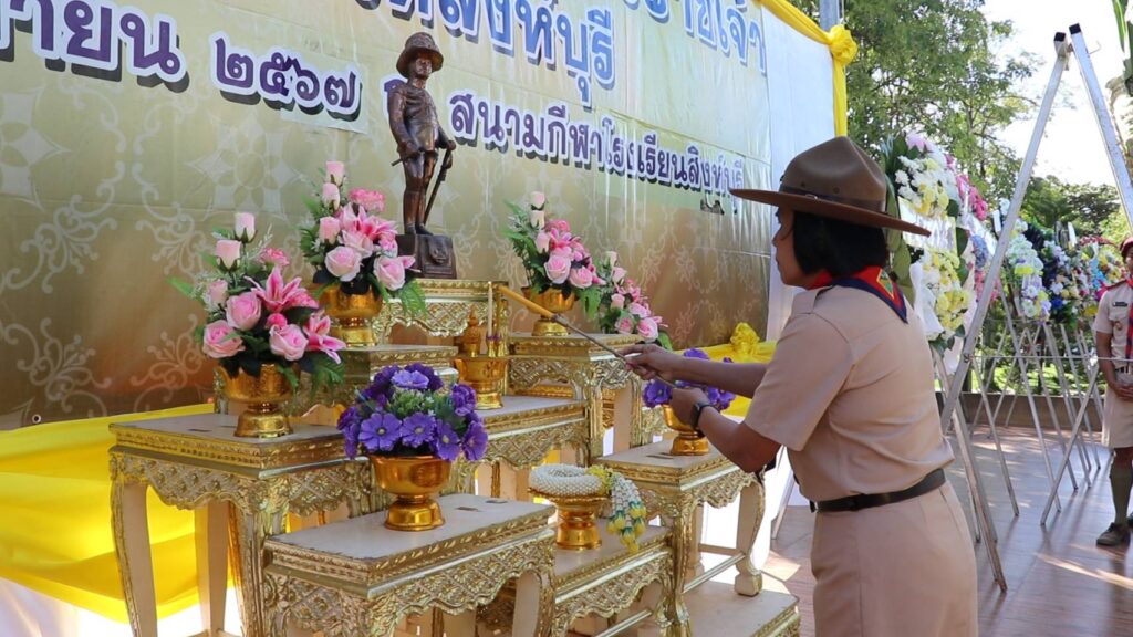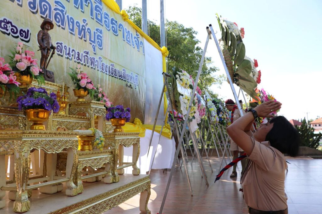 (เมื่อวันที่ 25 พฤศจิกายน 2567) เวลา 9.00 น.นางสาววีรวรรณ จันทนเสวี รองผู้ว่าราชการจังหวัดสิงห์บุรีเป็นประธานในพิธีเปิดงานวันสมเด็จพระมหาธีรราชเจ้า ประจำปี 2567 ของจังหวัดสิงห์บุรี ณ โดมโรงเรียนสิงห์บุรี โดยนางเกตุชญา วงษ์เพิก ผู้อำนวยการเขตพื้นที่การศึกษาประถมศึกษาสิงห์บุรี หัวหน้าสำนักงานลูกเสือจังหวัดสิงห์บุรี กองลูกเสือ เนตรนารี โรงเรียนต่างๆทุกสังกัด จำนวน 2,800 คนร่วมประกอบพิธีถวายบังคมและวางพวงมาลาถวายราชสดุดี เพื่อน้อมรำลึกในพระมหากรุณธิคุณและเทิดพระเกียรติแด่พระบาทสมเด็จพระปรเมนทรมหาวชิราวุธ พระมงกุฎเกล้าเจาอยู่หัวพระผู้พระราชทานกำเนิดลูกเสือไทย
