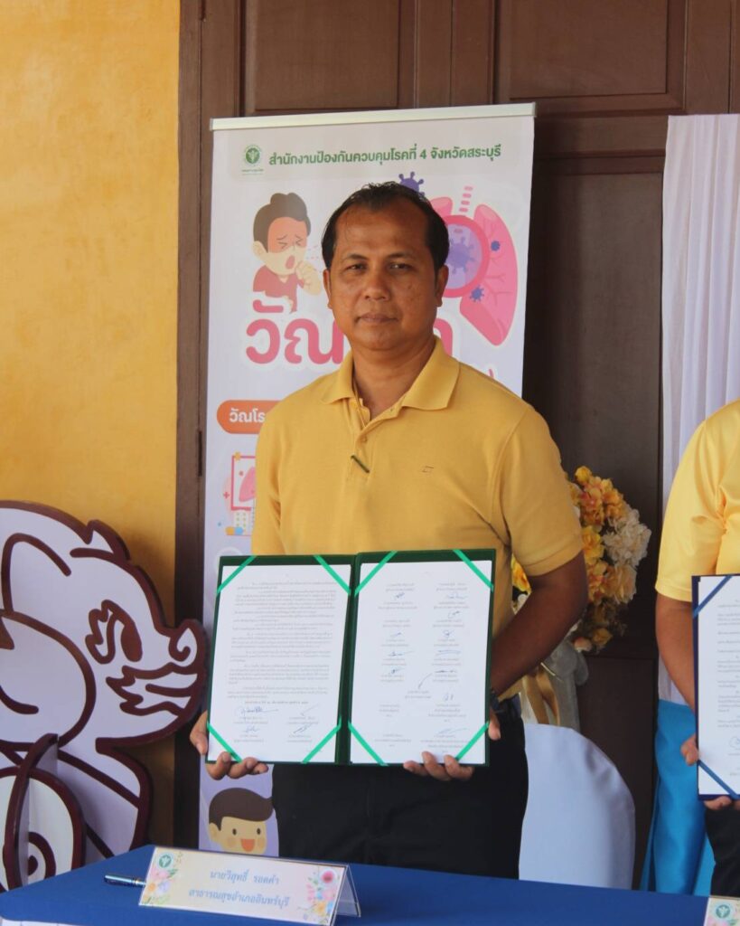 วันอังคารที่ 26 พฤศจิกายน พ.ศ. 2567 เวลา 08.30 น. นายศุภวัฒน์ เทียนถาวร นายกองค์การบริหารส่วนจังหวัดสิงห์บุรี ร่วมกับ นายแพทย์ชรินทร์ ดีปินตา นายแพทย์สาธารณสุขจังหวัดสิงห์บุรี และหน่วยบริการสาธารณสุขทุกแห่งในจังหวัดสิงห์บุรี รวมทั้งสิ้น 17 หน่วยงาน ร่วมลงนาม Mou บันทึกข้อตกลงความร่วมมือการคัดกรองวัณโรคเชิงรุกด้วยรถ เอกซเรย์เคลื่อนที่ โดยมีวัตถุประสงค์ เพื่อให้หน่วยบริการสาธารณสุขทุกแห่งร่วมมือดำเนินการคัดกรองวัณโรคเชิงรุก และกลุ่มเสี่ยงวัณโรคด้วยรถเอกซเรย์เคลื่อนที่ครอบคลุมพื้นที่จังหวัดสิงห์บุรี และติดตามผู้ที่มีผลเอกซเรย์ผิดปกติส่งต่อเข้าสู่การรักษาตามมาตรฐานให้กับโรงพยาบาลแม่ข่าย รวมถึงเพื่อสร้างความร่วมมือและการมีส่วนร่วมในการป้องกันการแพร่ระบาดและเสียชีวิตด้วยวัณโรค ณ อาคารมิวเซียมสิงห์บุรี (อาคาร ร.ศ. 130)และ kick off การดำเนินการตรวจคัดกรองวัณโรคเชิงรุก