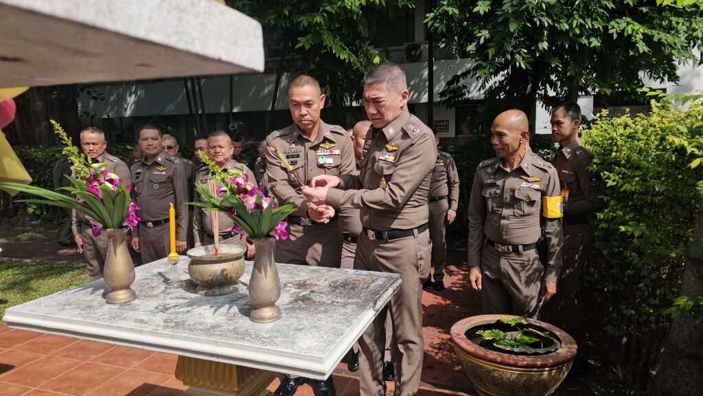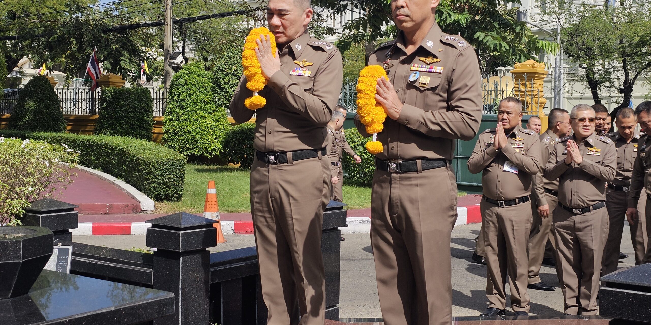 โดยจุดแรก พล.ต.ท.ธิติ ฯ และพล.ต.ท.สยาม ฯ นำข้าราชการตำรวจ ถวายพวงมาลัยสักการะ พระบรมราชานุสาวรีย์ พระบาทสมเด็จพระมหาภูมิพลอดุลยเดชมหาราช บรมนาถบพิตร (ในหลวงรัชกาลที่ 9 ) บริเวณศาลาด้านหน้าอาคาร บช.น.