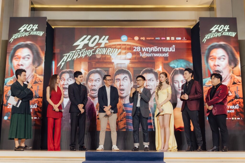 ก๊วนนักแสดงสายฮาอย่าง เต๋อ ฉันทวิชช์ ธนะเสวี, ต้าห์อู๋ พิทยา แซ่ฉั่ว, อาไท สุภทัต โอภาส, ปุ๊กกี้ ปวีณ์นุช แพ่งนคร โคจรมาเจอนักแสดงสาวเจ้าของฉายาสวยกินคน ต้าเหนิง กัญญาวีร์ สองเมือง ที่มารับบทเป็นผีคุณหนูผู้แสนเอาแต่ใจ ซึ่งทั้งหมดแท็กทีมมาพูดคุยกันอย่างสนุกสนาน และสร้างเสียงหัวเราะให้กับทุกคนในงาน พร้อมผนึกความฮาคูณสองด้วยนักแสดงรับเชิญอย่าง หลุยส์ ชวนชื่น, เฮงเฮง เชิญยิ้ม ฯลฯ โดยมีแขกผู้เกียรติ พาร์ทเนอร์ และสื่อมวลชน เข้าร่วมงานเปิดตัวภาพยนตร์อย่างล้นหลาม ณ พารากอน ซีนีเพล็กซ์ ชั้น 5 สยามพารากอน นอกจากนี้ยังมีศิลปิน นักแสดงมาร่วมให้กำลังใจอย่างคับคั่ง อาทิ ใหม่ ดาวิกา โฮร์เน่, เจเจ กฤษณภูมิ พิบูลสงคราม, ออฟโรด กันตภณ จินดาทวีผล, ต่อ ธนภพ ลีรัตนขจร, พีพี กฤษฏ์ อำนวยเดชกร, บลู พงศ์ทิวัตถ์ ตั้งวันเจริญ, ณัฏฐ์ กิจจริต, เบนจามิน โจเซฟ วาร์นี, เอม ภูมิพัฒน์ ถาวรศิริ, เอินเอิน ฟาติมา เดชะวลีกุล, แฟรี่ กิรณา พิพิธยากร, ไอซ์ พาริส อินทรโกมาลย์สุต, ญดา นริลญา กุลมงคลเพชร, ท็อป ณภัทร โชคจินดาชัย, ปอร์เช่ ศิวกร อดุลสุทธิกุล, เติร์ด ลภัส งามเชวง, แจ๊คกี้ จักริน กังวานเกียรติชัย, สายป่าน อภิญญา สกุลเจริญสุข, กัปตัน ชลธร คงยิ่งยง,เบล เขมิศรา พลเดช, พี สาริษฐ์ ตรัยเลิศวิเชียร,ฝน ศนันทฉัตร ธนพัฒน์พิศาล ฯลฯ พร้อมติดแฮชแท็ก #404สุขีนิรันดร์RUNRUN #404RUNRUN แชร์ความประทับใจกันสนั่นโซเชียล ซึ่งงานจัดขึ้นเมื่อวันที่ 26 พฤศจิกายนที่ผ่านมา ณ ชั้น 5 พารากอน ซีนีเพล็กซ์, สยามพารากอน
