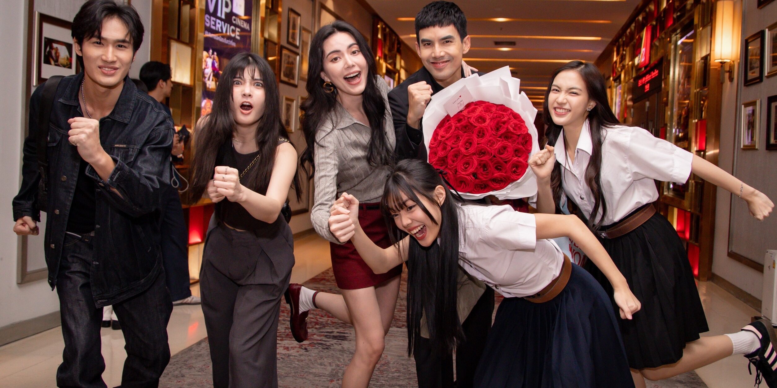 จินา โอสถศิลป์ ประธานเจ้าหน้าที่บริหาร บริษัท จีดีเอช ห้าห้าเก้า จำกัด พร้อมด้วยผู้บริหาร เก้ง จิระ มะลิกุล รวมถึงพาร์ทเนอร์, ผู้กำกับฯ, โปรดิวเซอร์ และทีมนักแสดง ก่อนที่ทุกคนจะไปดูภาพยนตร์พร้อมกัน งานนี้