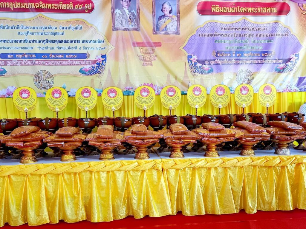 เมื่อวันที่ ๒๖ พฤศจิกายน ๒๕๖๗ เวลา ๑๐.๓๐ น.ณ มูลนิธิส่งเสริมพระพุทธศาสนาแห่งประเทศไทย เลขที่ ๑ หมู่ที่ ๒ ถนนตลิ่งชัน-สุพรรณบุรี ตำบลหน้าไม้ อำเภอลาดหลุมแก้ว จังหวัดปทุมธานผู้สื่อข่าวรายงานว่า นายสมคิด จันทมฤก ผู้ว่าราชการจังหวัดปทุมธานี ให้เกียรติมาเป็นประธานในพิธีมอบผ้าไตรพระราชทาน สมเด็จพระกนิษฐาธิราชเจ้า กรมสมเด็จพระเทพรัตนราชสุดาฯสยามบรมราชกุมารี ทรงพระกรุณาโปรดเกล้า พระราชทานผ้าไตรแก่ผู้อุปสมบท โครงการอุปสมบทเฉลิมพระเกียรติ ๙๙ รูป เนื่องในโอกาส”วันชาติ”วันพ่อแห่งชาติ” และ”วันหามงคลเฉลิมพระชนมพรรษา” ๕ ธันวาคม ๒๕๖๗ เพื่อน้อมรำลึกในพระมหากรุณาธิคุณอันหาที่สุดมิได้และน้องถวายพระราชกุศลพระบาทสมเด็จพระบรมชนกาธิเบศร มหาภูมิพลอดุลยเดชมหาราช บรมนาถบพิตร ผู้ทรงพระคุณอันประเสริฐ โดยมีพระครูวชิรรัตนสุนทรผู้ช่วยเจ้าอาวาสวัดหงส์ เขตบางกอกใหญ่ กรุงเทพฯ ในฐานะประธานมูลนิธิส่งเสริมพระพุทธศาสนาแห่งประเทศไทย เป็นประธานฝ่ายสงฆ์ พร้อมด้วยพลเรือเอกวิจิตร ตันประภา ผู้ทรงคุณวุฒิพิเศษกองทัพเรือ พันตำรวจเอกฤศ จันทร์สว่าง ผู้แทนผู้บัญชาการตำรวจภูธรภาค 7 รองผู้บังคับการตำรวจภูธรจังหวัดสุพรรณบุรี นายอำเภอลาดหลุมแก้ว และ แขกผู้มีเกียรติเข้าร่วมพิธีเป็นจำนวนมาก ด้านนายสมคิด จันทมฤก ผู้ว่าราชการจังหวัดปทุมธานี ประธานฝ่ายฆราวาส ท่านได้กล่าวเพิ่มเติมกับผู้สื่อข่าวว่า วันนี้ได้รับเกียรติมาเป็นประธานในพิธีมอบผ้าไตรพระราชทานและพิธีบรรพชา-อุปสมบท โดยมาร่วมทำบุญพร้อมกับคณะฯ ต้องกราบขอบพระคุณพระครูวชิรรัตนสุนทร ประธานมูลนิธิศูนย์ส่งเสริมพระพุทธศาสนาแห่งประเทศไทย ที่ได้จัดพิธีมอบผ้าไตรพระราชทานและพิธีบรรพชาอุปสมบท โครงการนี้จัดขึ้น ระหว่างวันที่ ๒๓ พฤศจิกายน ถึงวันที่ ๑๐ ธันวาคม ๒๕๖๗ ซึ่งมีผู้เข้าร่วมอุปสมบทหลายท่าน มาจากส่วนต่างๆ เริ่มนับตั้งแต่วันแรกของผู้ที่สมัคร ที่เข้ามาถือศีลปฏิบัติธรรม ก่อนอุปสมบทและทางโครงการได้รับการอุปถัมภ์จากผู้มีจิตศรัทธาร่วมเป็นเจ้าภาพจึงทำให้โครงการดำเนินไปด้วยดีหลังจาก เสร็จสิ้นพิธีมอบผ้าไตรพระราชทาน และบรรพชา อุปสมบทแล้ว ต่อมาท่านสมคิด จันทมฤก ผู้ว่าราชการจังหวัดปทุมธานี พร้อมด้วยคณะฯ ได้เข้ากราบนมัสการพระครูวชิรรัตนสุนทร ผู้ช่วยเจ้าอาวาสวัดหงส์รัตนาราม ราชวรวิหาร ประธานกรรมการมูลนิธิส่งเสริมพระพุทธศาสนาแห่งประเทศไทย ก่อนเดินทางกลับเพื่อไปปฏิบัติหน้าที่ต่อไป