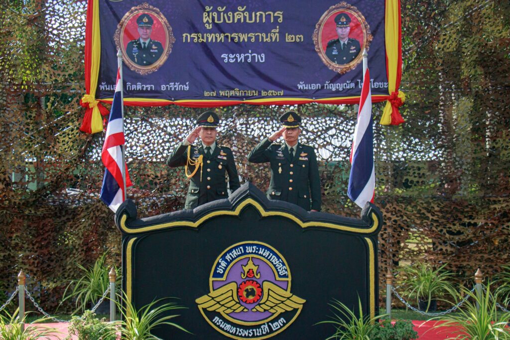 เมื่อวันที่ 27 พฤศจิกายน 2567 เวลา 1330 น. ที่กองบังคับการหน่วยเฉพาะกิจกรมทหารพรานที่ 23 ค่ายพิทักษ์อุทุมพรเขต ตำบลเมือง อำเภอกันทรลักษ์ จังหวัดศรีสะเกษ ได้จัดพิธีรับ – ส่งหน้าที่ ผู้บังคับการกรมทหารพรานที่ 23 ระหว่าง พันเอก กิตติวรา อารีรักษ์ ผู้บังคับการกรมทหารพรานที่ 23 (ท่านเก่า) และ พันเอก กัญญณัต ไชยโอชะ ผู้บังคับการกรมทหารพรานที่ 23 (ท่านใหม่) ภายหลังจากได้มีคำสั่งปรับย้ายนายทหารประจำปีของกองทัพบกให้มีตำแหน่งที่สูงขึ้น จากนั้นได้มีการลงนามในเอกสารรับ – ส่งหน้าที่ และส่งมอบการบังคับบัญชา พร้อมรับมอบธงประจำหน่วย โดยมี ผู้บังคับกองร้อยหน่วยขึ้นตรงหน่วยเฉพาะกิจกรมทหารพรานที่ 23, นายทหารฝ่ายอำนวยการ, และกำลังพลอาสาสมัครทหารพรานของหน่วยเข้าร่วมพิธี