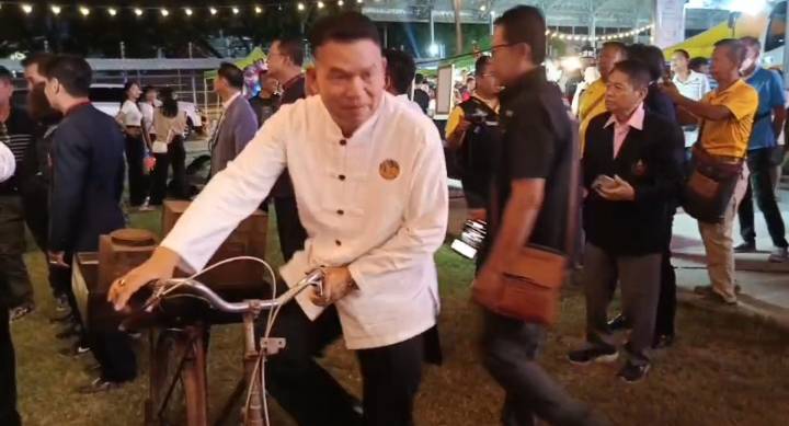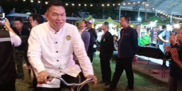 อ้าวเวลาต่อมา ท่าน ว่าที่ร้อยตรี ทรงพล แป้นแก้วรองผู้ว่าราชการจังหวัดลพบุรี พร้อมด้วย นายรัฐพล ธุระพันธ์ นายอำเภอเมืองลพบุรี ได้ขี่จักรยานมุ่งหน้าไปที่หน้าเวที จะขึ้นไปบนเวทีทำพิธีเปิดงานฤดูหนาว ประจำปี 2567 เป็นทางการ