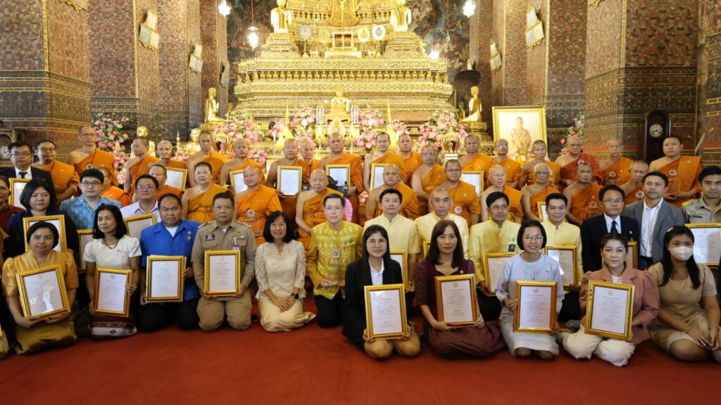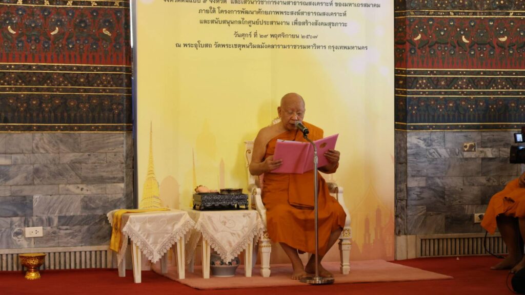 วันที่ 29 พฤศจิกายน 2567 เวลา 08.00 น. ที่พระอุโบสถ วัดพระเชตุพนวิมลมังคลารามราชวรมหาวิหาร เขตพระนคร กรุงเทพมหานคร นายอำพล อังคภากรณ์กุล ผู้ว่าราชการจังหวัดลพบุรี เข้าร่วมพิธีรับมอบโล่รางวัลเกียรติคุณและประกาศเกียรติคุณจังหวัดต้นแบบ ๙ จังหวัดและเสวนาวิชาการงานสาธารณสงเคราะห์ ของมหาเถรสมาคม ภายใต้ โครงการพัฒนาศักยภาพพระสงฆ์สาธารณสงเคราะห์และสนับสนุนกลไกศูนย์ประสานงาน เพื่อสร้างสังคมสุขภาวะ โดยมีสมเด็จพระมหาธีราจารย์ ประธานฝ่ายสาธารณสงเคราะห์ของมหาเถรสมาคม เป็นประธานฝ่ายสงฆ์ ในการนี้ นายวีระ จำลอง ผู้อำนวยการสำนักงานพระพุทธศาสนาจังหวัดลพบุรี พร้อมด้วยคณะสงฆ์จังหวัดลพบุรี เข้าร่วมรับมอบโล่รางวัลเกียรติคุณและประกาศเกียรติคุณจังหวัดต้นแบบ ๙ จังหวัด ในครั้งนี้