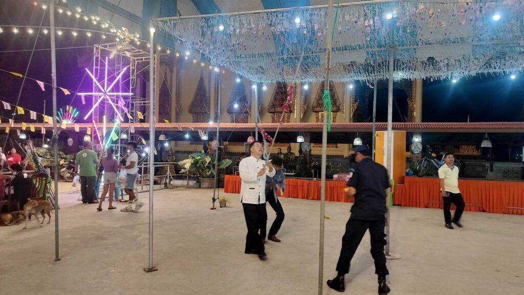 เพื่อไปตรวจเยี่ยมชุด ชรบ.ตำบลบางขันหมาก ที่มาปฏิบัติหน้าที่งานประจำปี วัดสิงห์ทอง เวลาต่อมาท่านนายอำเภอร่วมกันสอยดาว เป็นปฐมฤกษ์ให้กับทางวัด สร้างความฮือฮาไปทั่วงานเลยทีเดียว