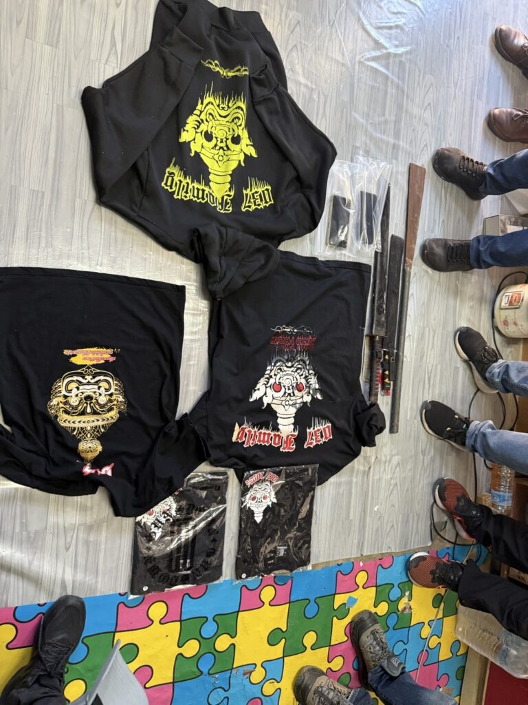เจ้าหน้าที่ตำรวจจึงได้ทำการยึดสิ่งของดังกล่าวไว้ โดยความยินยอมของนาย Saw Ah Di เพื่อเป็นหลักฐานในการตรวจสอบการกระทำความผิดอื่นๆของนาย Saw Ah Di จากการขยายผลจึงได้ทราบข้อมูลร้านที่ได้รับจ้างสกรีนเสื้อของแก็งค์ดังกล่าว เจ้าพนักงานตำรวจจึงได้เข้าทำการตรวจสอบ บ้านใน ซ.เพชรเกษม 114 แขวงหนองค้างพลู เขตหนองแขม กทม. พบกับนายยุทธนา ผู้เป็นเจ้าของนำพาเข้าตรวจค้น โดยนาย ยุทธนาฯให้การว่าได้มีบุคคลต่างชาติ สัญชาติเมียนมาร์ มาว่าจ้างให้สกรีนเสื้อตามรูปแบบลักษณะดังกล่าวเมื่อวันที่ 27 มิถุนายน 2567 โดยได้คิดราคาค่าจ้างตามปกติลูกค้าทั่วไป ซึ่งได้รับการว่าจ้างให้สกรีนเสื้อจำนวนสองครั้ง ทั้งนี้ นายยุทธนาฯได้มอบบล็อกสกรีนและแผ่นฟิลม์ให้กับเจ้าหน้าที่ตำรวจชุดดังกล่าวไว้เป็นหลักฐาน