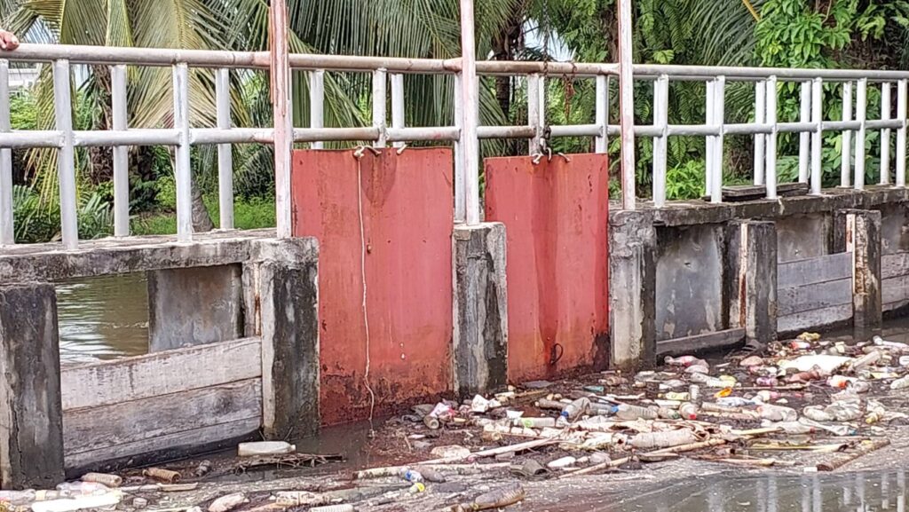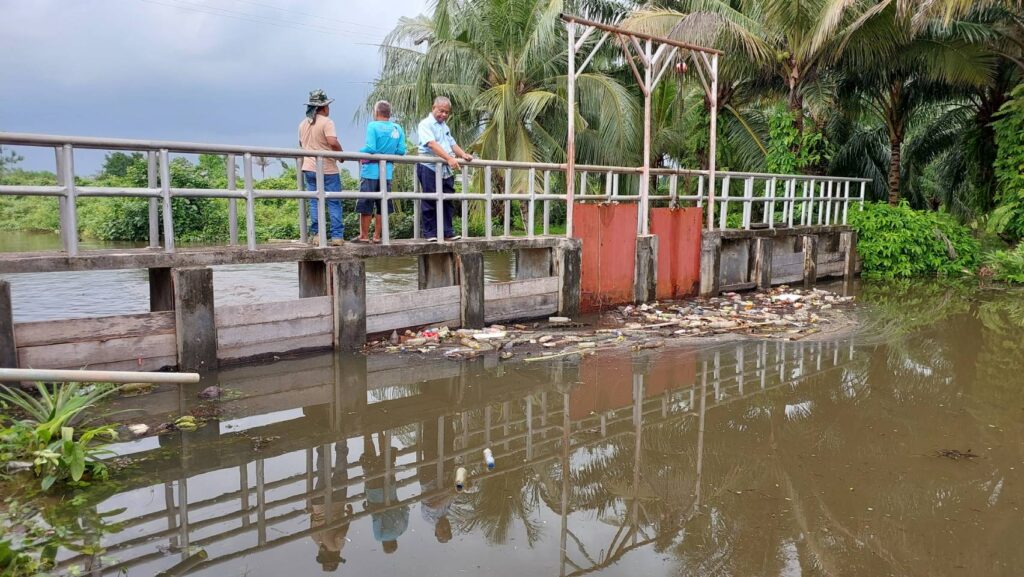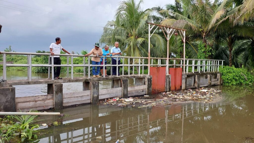 กลายสภาพเป็นเขื่อนกั้นนำ้คลองกะแดะแจะที่ไหลมาจากต.ช้างซ้าย จะส่งผลให้มีน้ำท่วมสวนปาล์มที่อยู่เหนือเขื่อนขึ้นไป