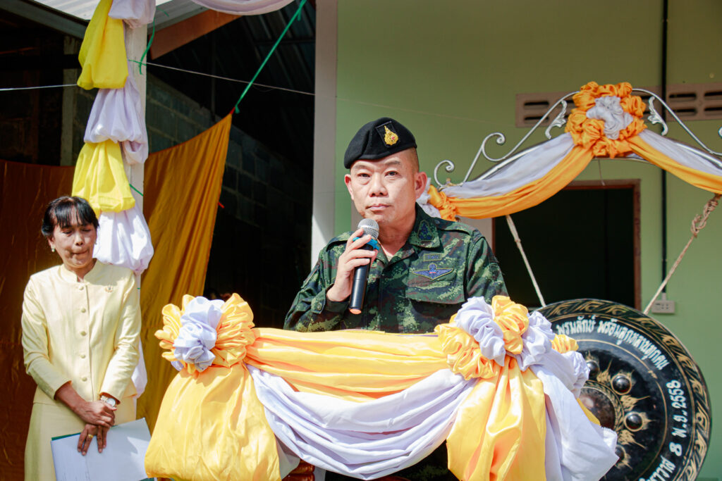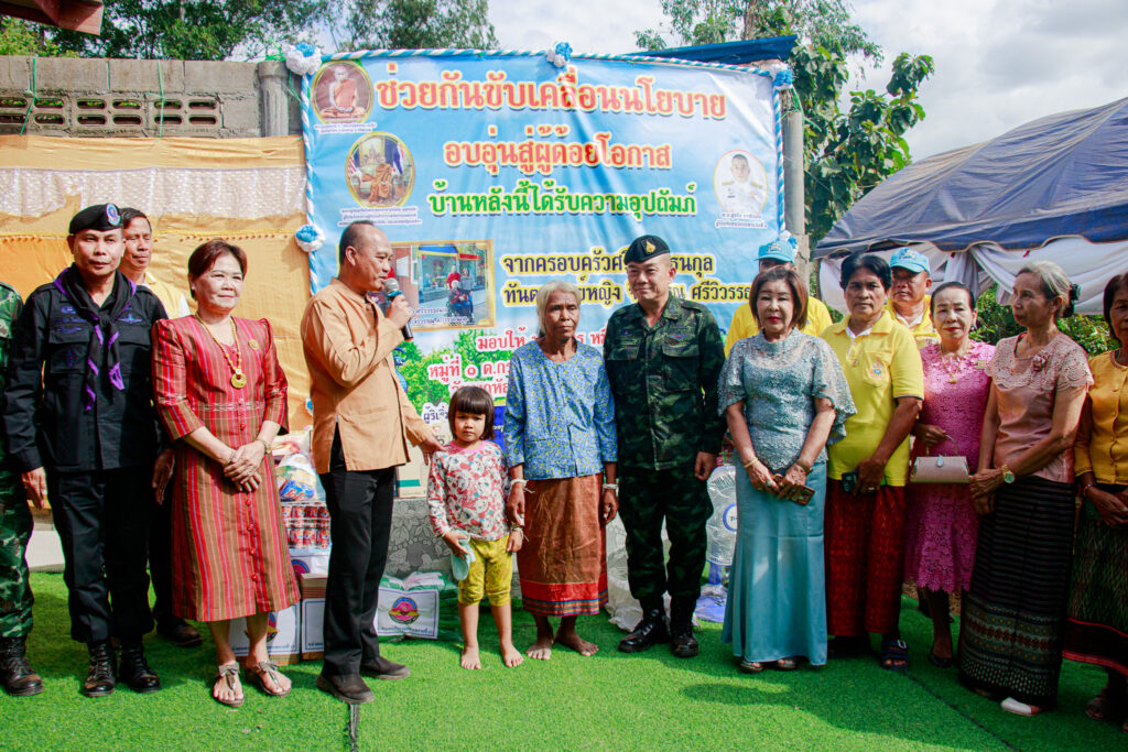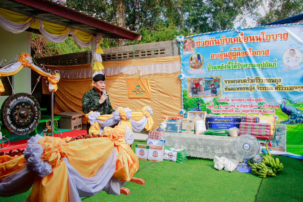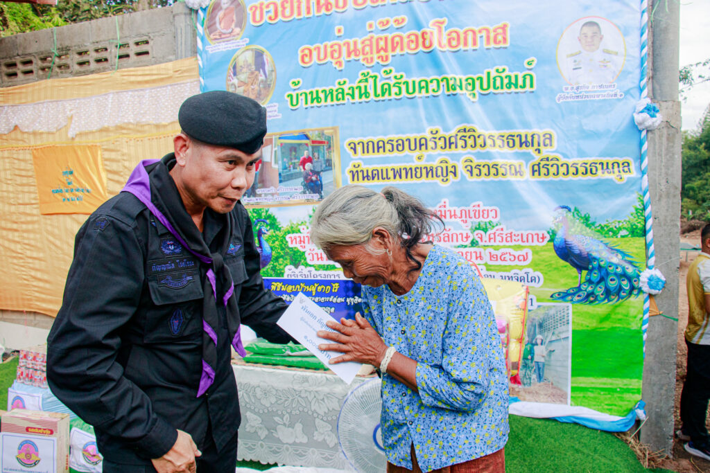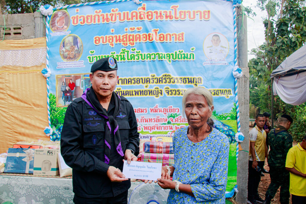 เมื่อวันที่ 28 พฤศจิกายน 2567 เวลา 1330-1400 น. ที่บ้านกระแซงเหนือ หมู่ที่ 1 ตำบลกระแซง อำเภอกันทรลักษ์ จังหวัดศรีสะเกษ พันเอก กัญญณัต ไชยโอชะ ผู้บังคับการกรมทหารพรานที่ 23/ผู้บังคับหน่วยเฉพาะกิจกรมทหารพรานที่ 23 ร่วมพิธีมอบบ้านผู้ยากไร้ ตามโครงการขับเคลื่อนนโยบายอบอุ่นสู่ผู้ด้อยโอกาส ให้กับ นางสมร หมื่นภูเขียว ราษฎรชุมชนบ้านกระแซงเหนือ ตำบลกระแซง อำเภอกันทรลักษ์ จังหวัดศรีสะเกษ โดยได้รับการสนับสนุนงบประมาณจาก พระครูวิมลศีลวิเทศ (พระอาจารย์อ่อน มุทิจิตุโต) เพื่อให้มีที่อยู่อาศัยที่มั่นคงแข็งแรงปลอดภัย โดยมี พันเอก สุระกิจ กาฬเนตร ผู้บังคับหน่วยเฉพาะกิจที่ 1 กองกำลังสุรนารี พร้อมด้วย นายพรชัย วงศ์งาม นายอำเภอกันทรลักษ์ จังหวัดศรีสะเกษ เป็นประธานในพิธี ซึ่งถือเป็นการบูรณาการร่วมมือของทุกภาคส่วน เพื่อพัฒนาคุณภาพชีวิต และส่งเสริมให้ผู้ยากไร้ให้สามารถดำรงชีพอยู่ในสังคมได้อย่างมีความสมสุข