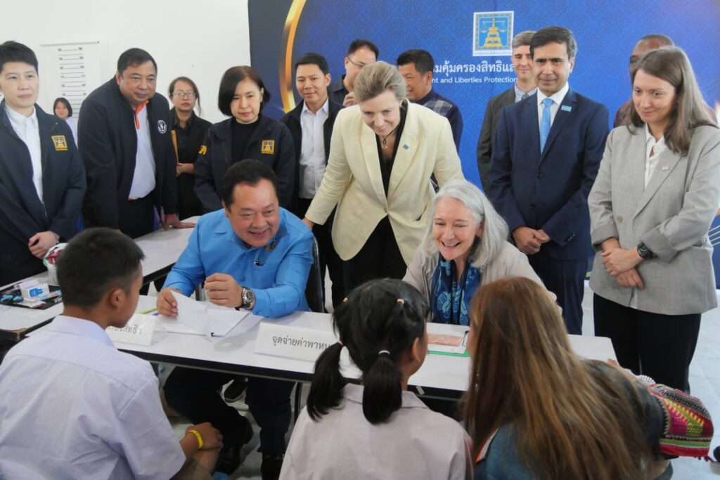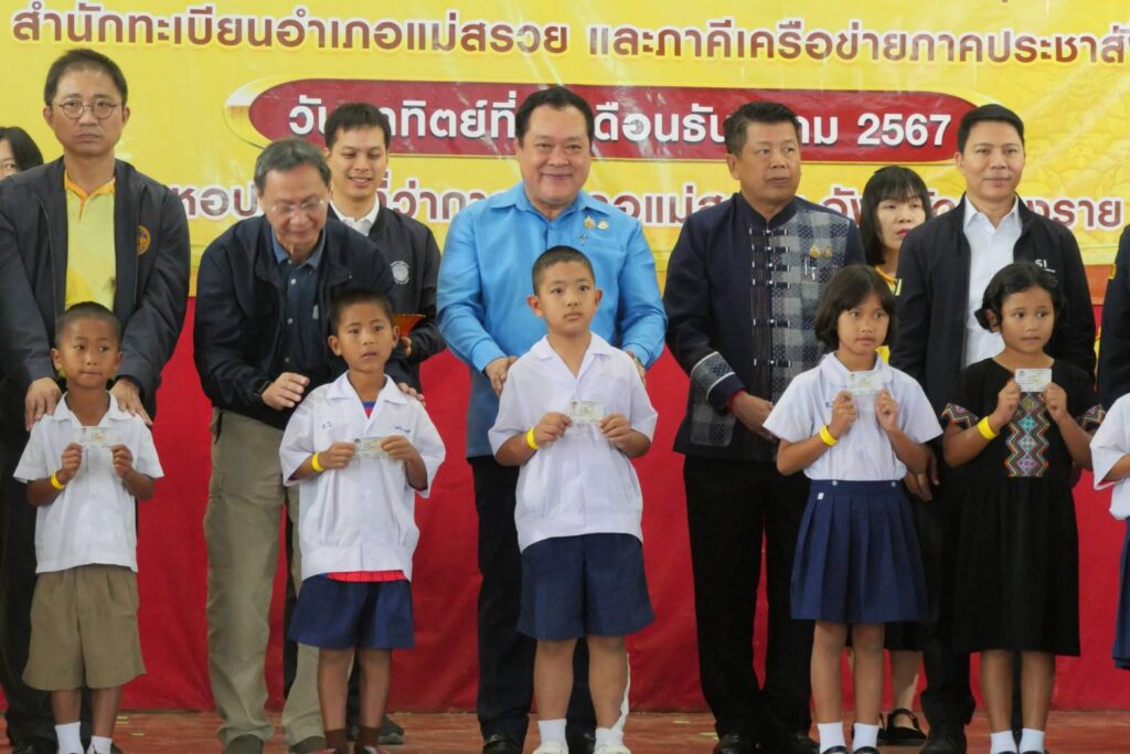 เมื่อวันที่ 1 ธันวาคม 2567 ผู้สื่อข่าวรายงานจาก ที่ว่าการอำเภอแม่สรวย จังหวัดเชียงราย ว่า พันตำรวจเอก ทวี สอดส่อง รัฐมนตรีว่าการกระทรวงยุติธรรม เดินทางมาเป็นประธานในพิธีมอบบัตรประจำตัวให้แก่กลุ่มเด็กนักเรียนที่มีเลขประจำตัวขึ้นต้นด้วยอักษร G และบุคคลที่ได้รับการเพิ่มชื่อเข้าในทะเบียนราษฎร หรือคนไทยตกหล่น ตามโครงการนำความยุติธรรมเข้าหาประชาชน แก้ไขปัญหาสถานะบุคคลและสัญชาติ โดยมีผู้แทนส่วนราชการในสังกัดกระทรวงยุติธรรมเข้าร่วมกิจกรรมดังกล่าว และมี คณะผู้แทนสำนักงานข้าหลวงใหญ่ผู้ลี้ภัย แห่งสหประชาชาติ (UNHCR) ประกอบด้วย 1.) คุณมิเกลล่า ฟิลแบรย์-สตอเร่ ผู้ประสานสหประชาชาติประจำประเทศไทย (Ms. Michaela Friberg-Storey, UN Resident Coordinator, Thailand), 2.) คุณแทมมี ชาร์ป ผู้แทนข้าหลวงใหญ่ผู้ลี้ภัยแห่งสหประชาชาติประจำประเทศไทย (Ms. Tammi Sharpe, Representative of UN High Commissioner for Refugees (UNHCR), Thailand), 3.) คุณคยองซอน คิม ผู้อำนวยการองค์การยูนิเซฟ ประเทศไทย (Ms.Kyungsun Kim, Representataive of United Nations Children’s Fund (UNICEF), Thailand), 4.) คุณเจอรัลดีน อองซาร์ค หัวหน้าสำนักงานองค์การระหว่างประเทศเพื่อการโยกย้ายถิ่นฐาน ประจำประเทศไทย (Ms. Géraldine Ansart, Chief of Mission for the International Organization for Migration (IOM) Thailand) เดินทางมาร่วมในพิธีด้วย โดยมี นายราชัน มีน้อย รองผู้ว่าราชการจังหวัดเชียงราย นำกล่าวต้อนรับ และส่วนราชการ องค์กรปกครองท้อนถิ่นในพื้นที่ร่วมให้การต้อนรับ