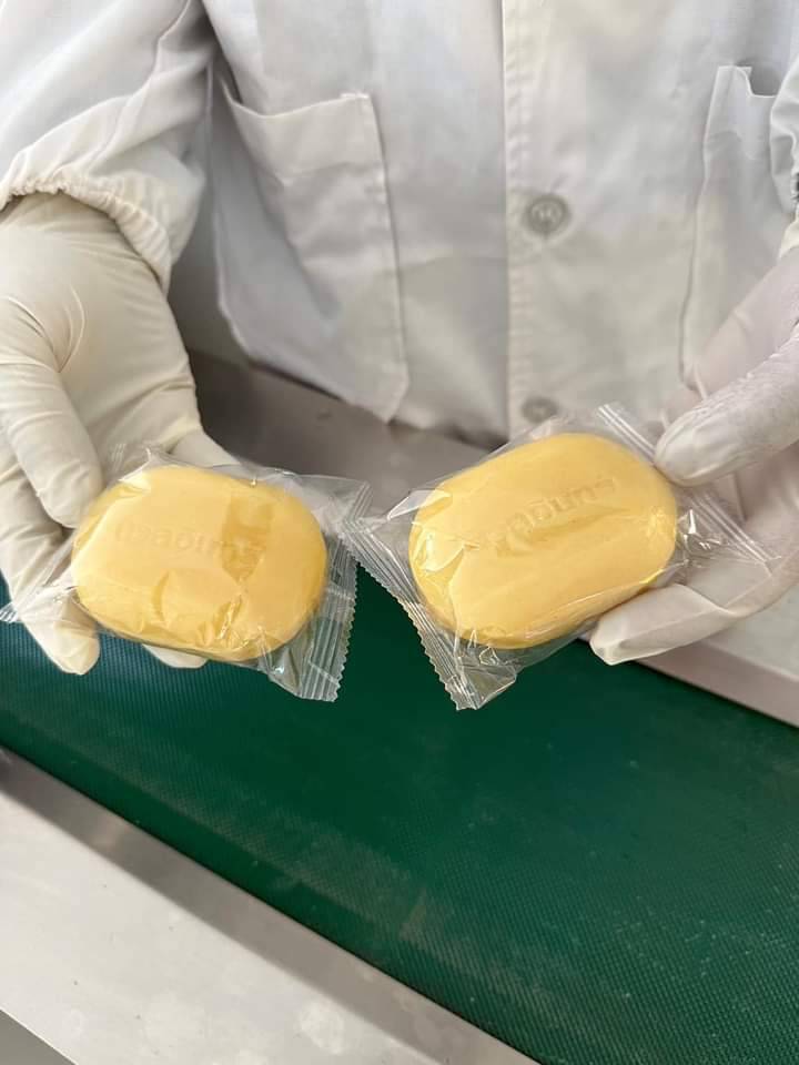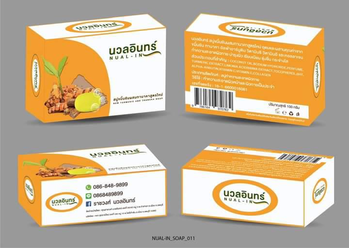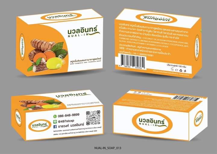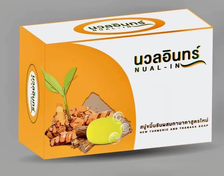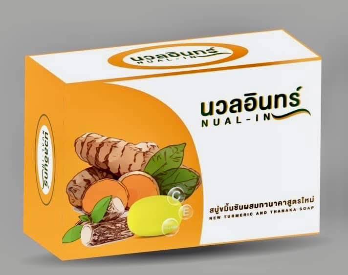 ขอแนะนำสบู่สมุนไพรนวลอินทร์ สูตรขมิ้นเข้มข้น ใช้ขมิ้น 100% ไม่มีผสมสารเคมี กลิ่นหอมจากธรรมชาติ