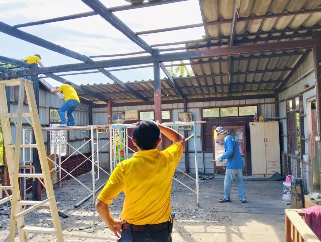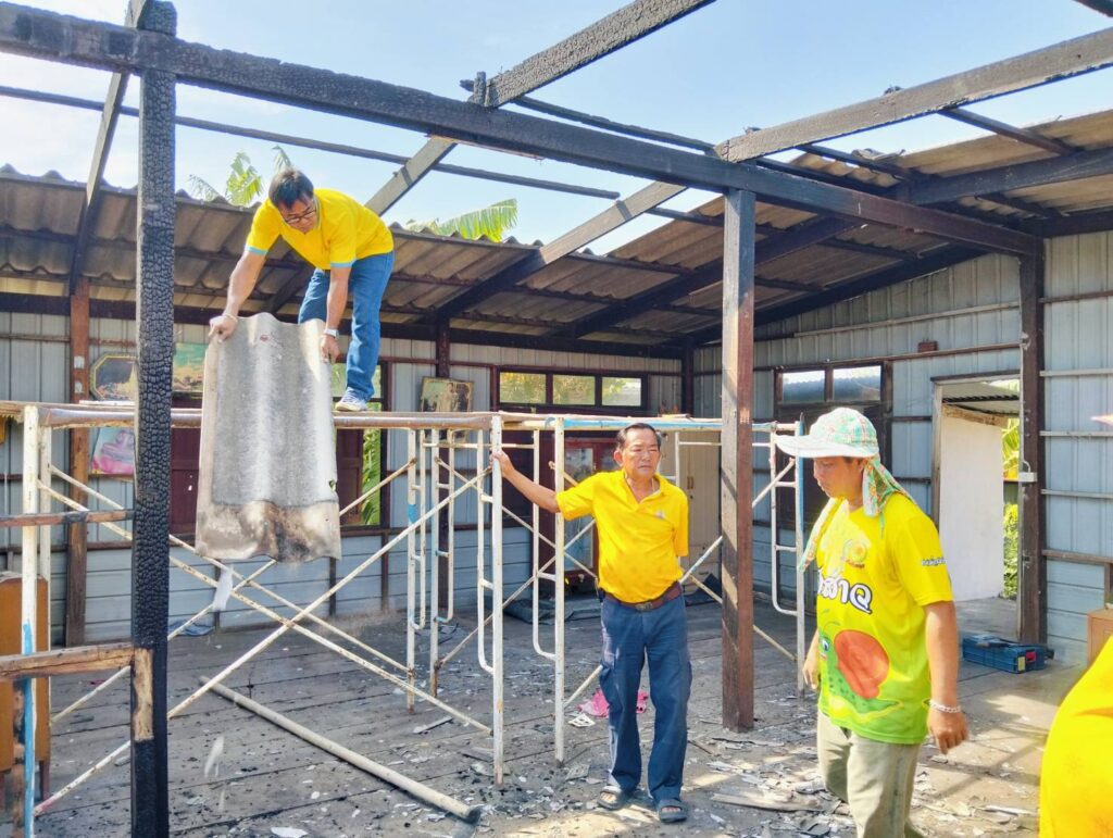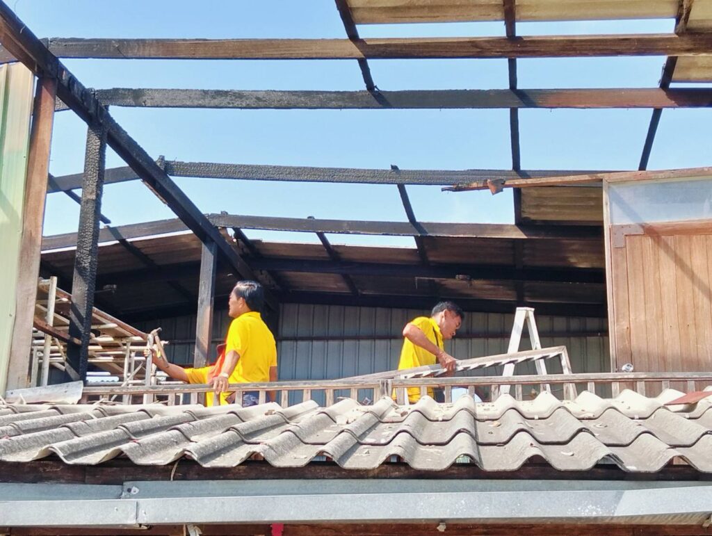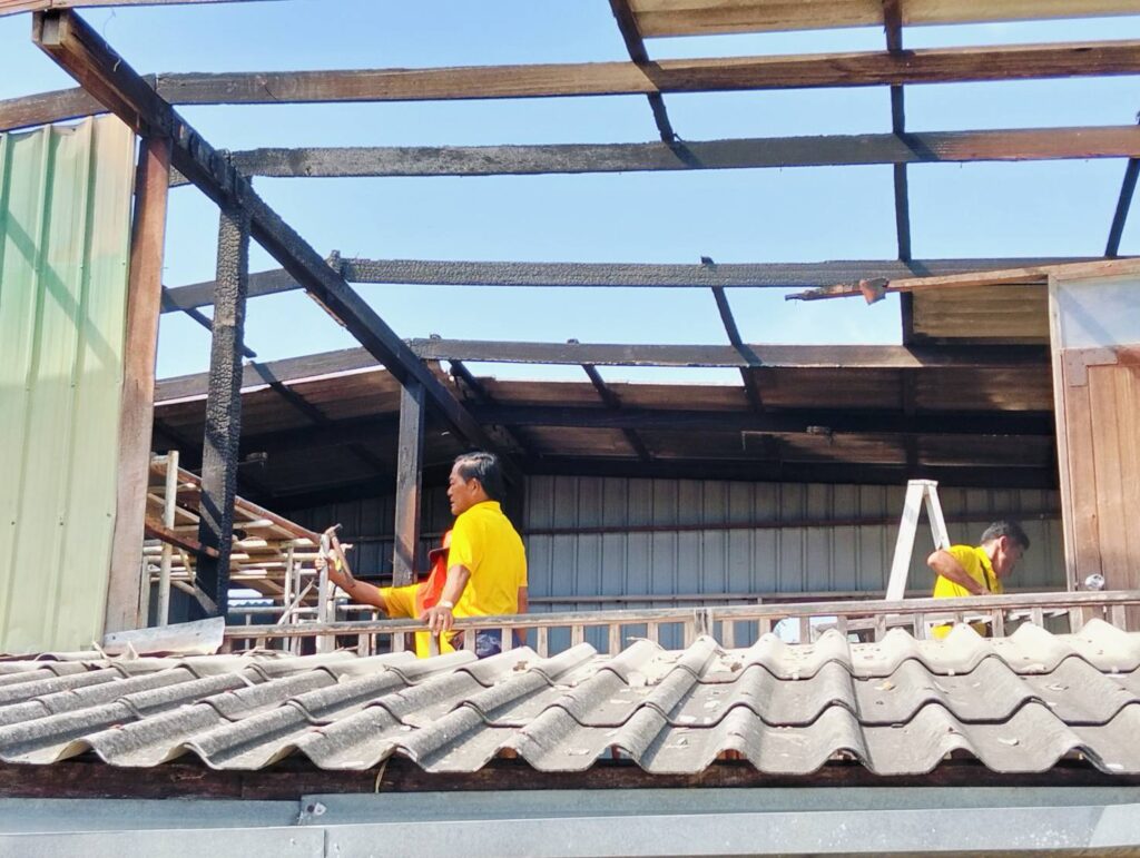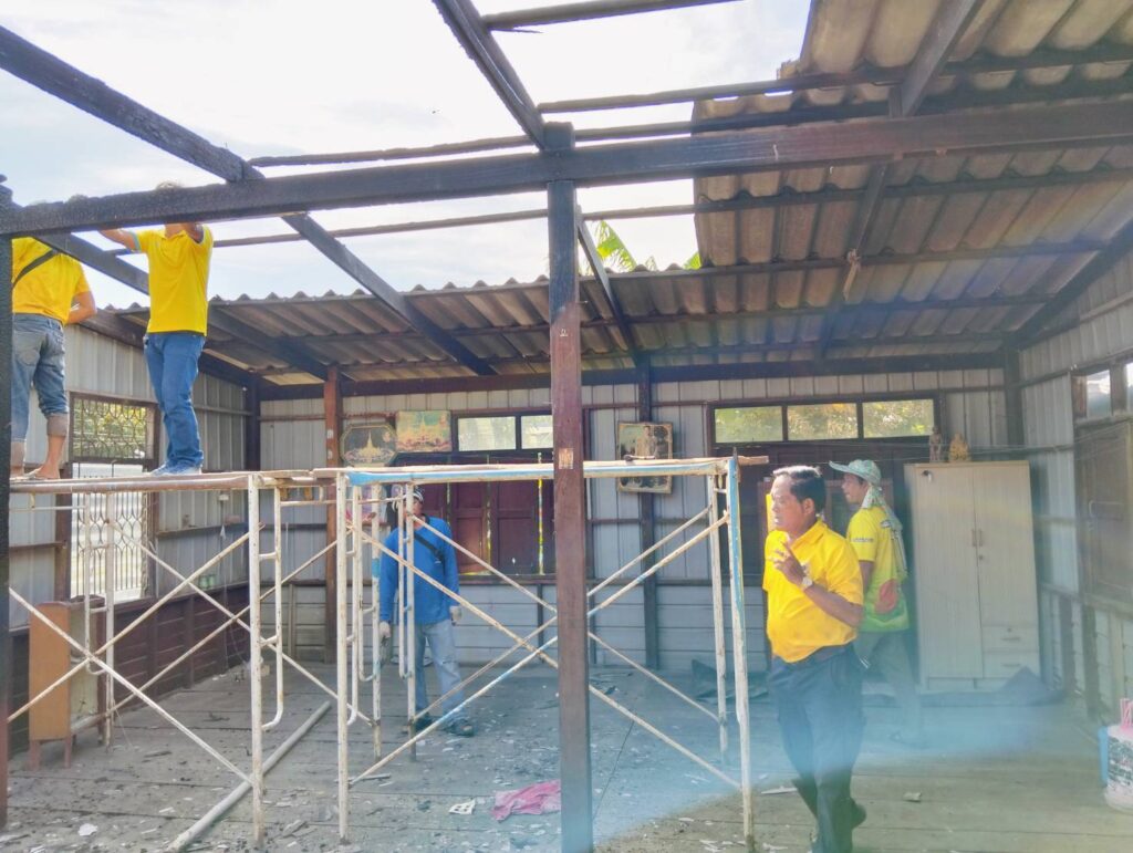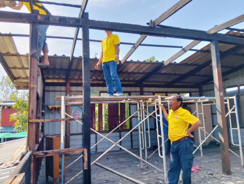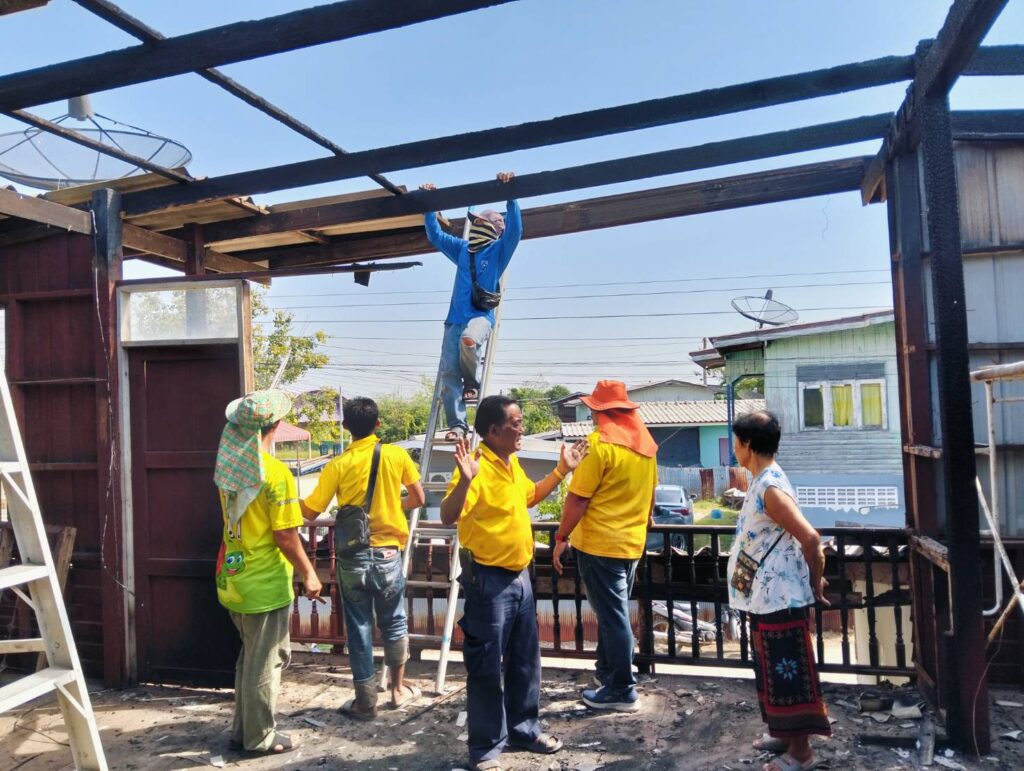 ได้พาทีมงานกองช่าง อบต. หนองทรายขาว ลงพื้นที่บ้านของ “นายนิยม แก้วทอง บ้านเลขที่ 17 หมู่ที่ 7 บ้านคลอง ต.หนองทรายขาว (บ้านผู้ประสบภัยอัคคีภัย) ทำการรื้อบริเวณที่เสียหายจากเพลิงไหม้ เพื่อที่จะได้ทำการซ่อมแซมต่อไป